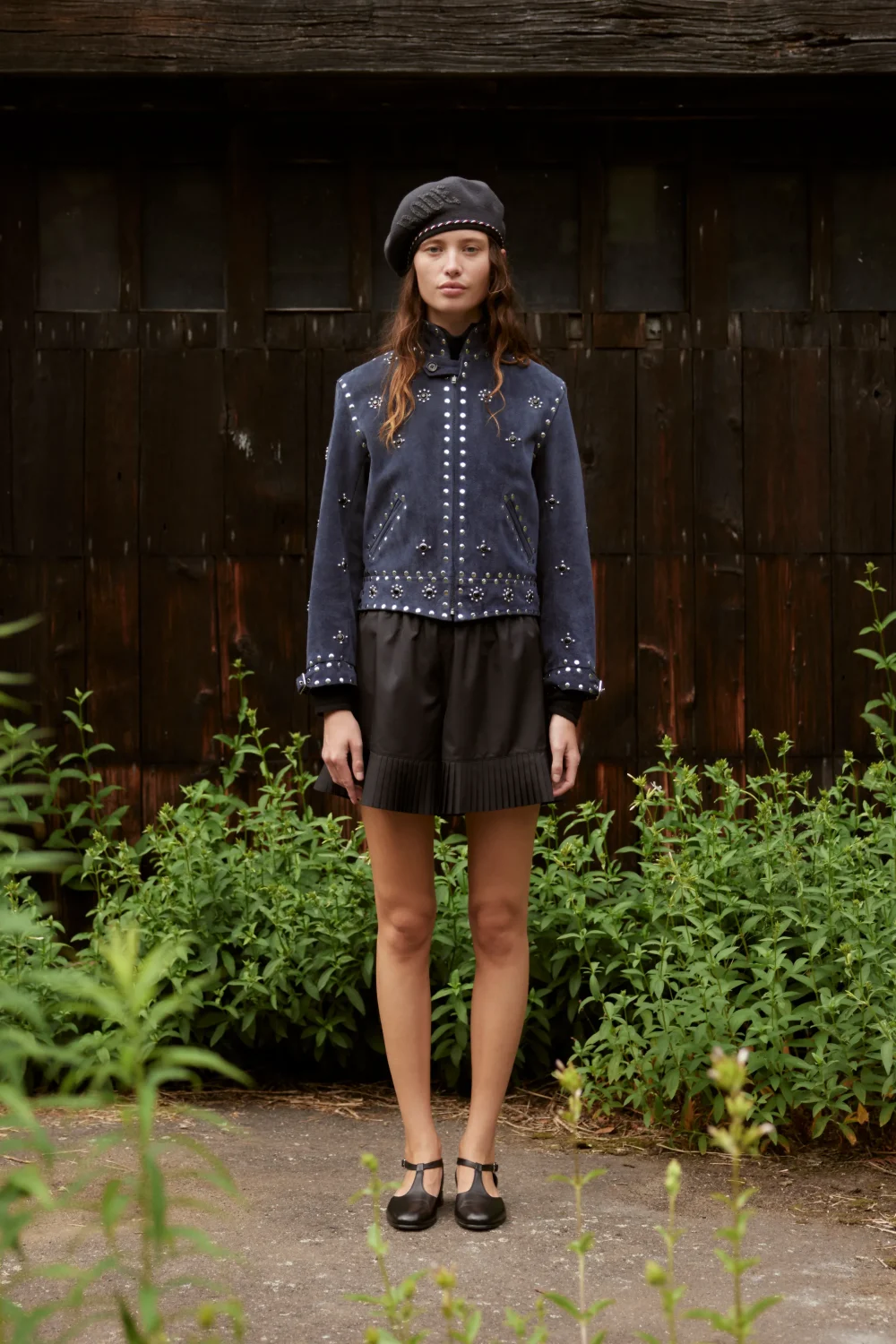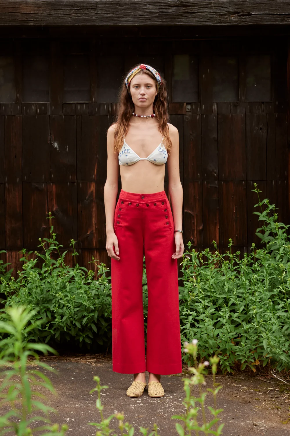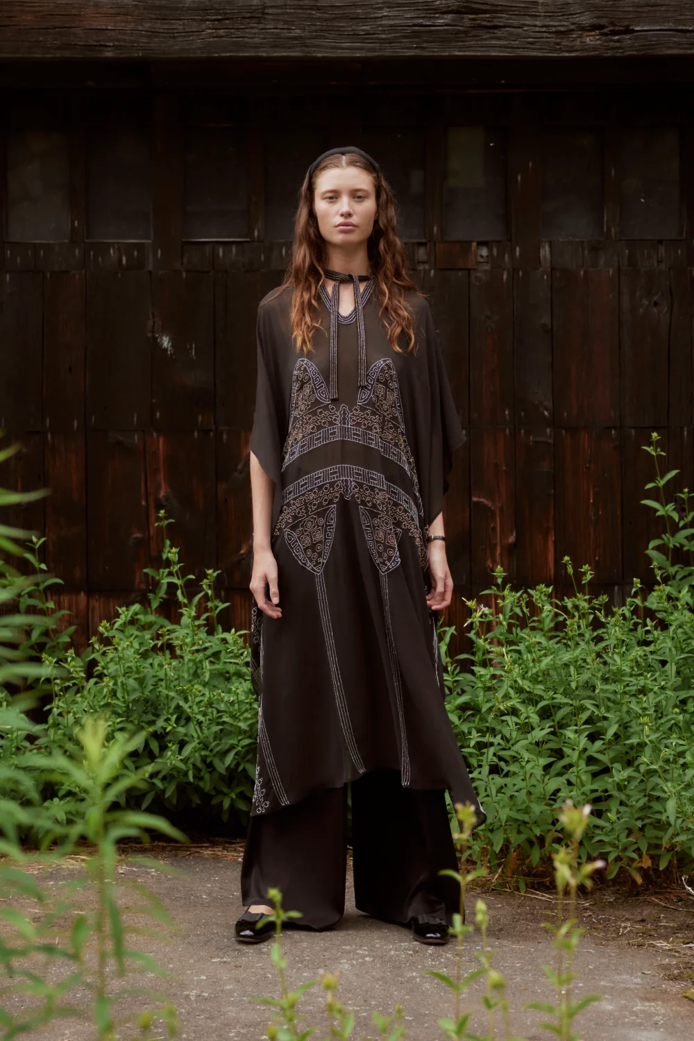 В этом сезоне Эмили Адамс Боде продолжает развивать свою уникальную концепцию моды, переплетая спортивные элементы, винтажные мотивы и искусную работу с тканями. На этот раз она обратилась к идее «пляжной пижамы» — образ, популярный в конце XIX века, когда женщины носили длинные туники поверх брюк у моря.