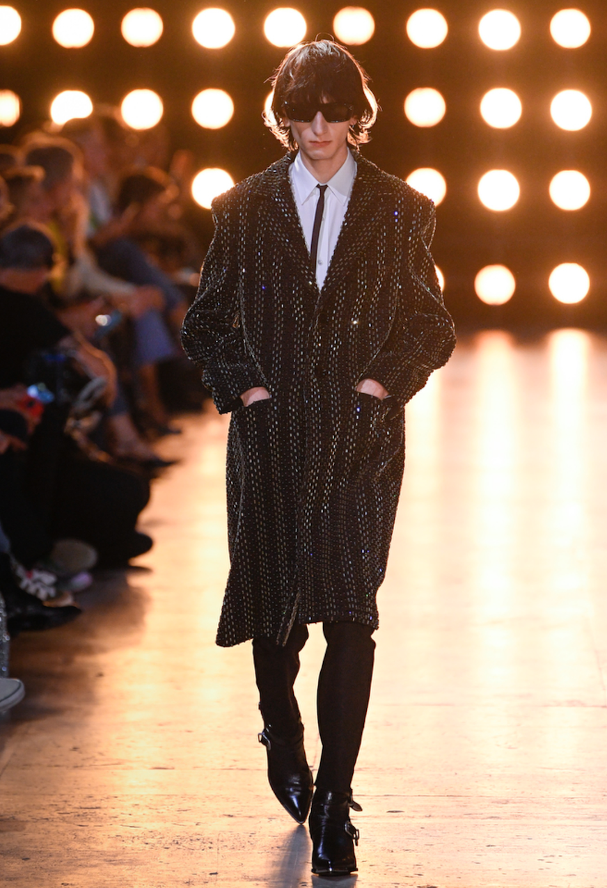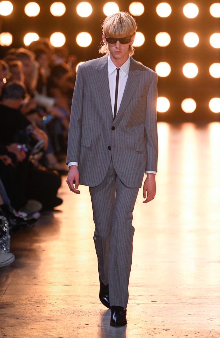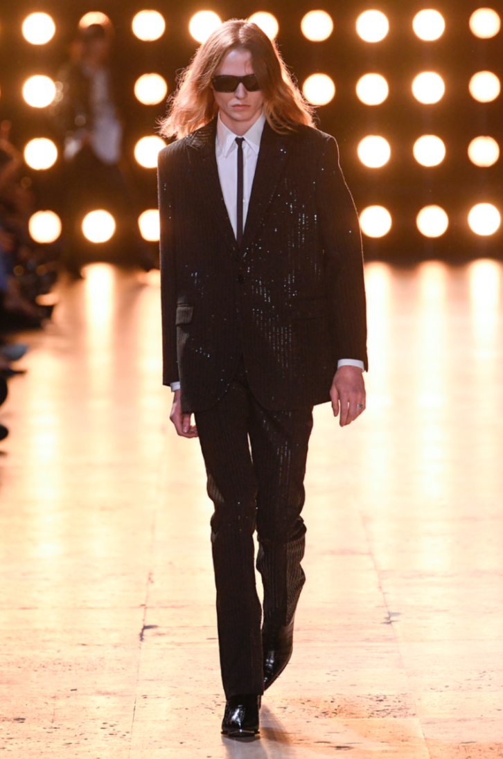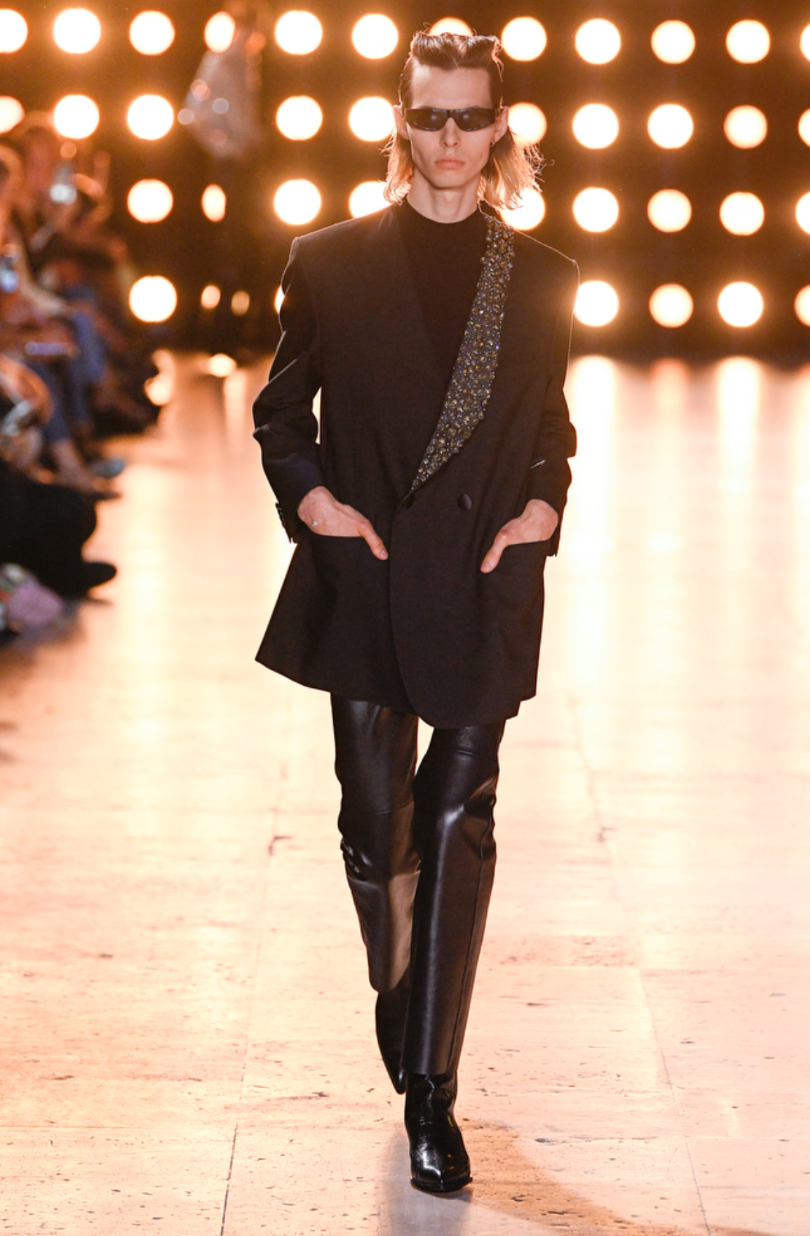 Для своего официального возвращения на парижские подиумы креативный директор бренда - Эди Слиман - выбрал крупнейший в Европе музей современного искусства - Palais de Tokyo. Показ открылся уникальным световым шоу, был наполнен ретро-вибрациями и намеками на рок-эпоху. Модели шли по подиуму в солнцезащитных очках, засунув руки в карманы, под вспышками прожекторов.