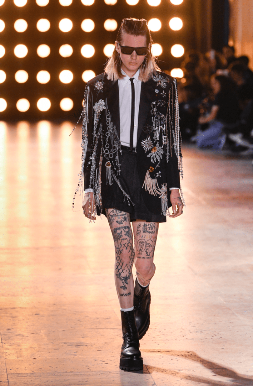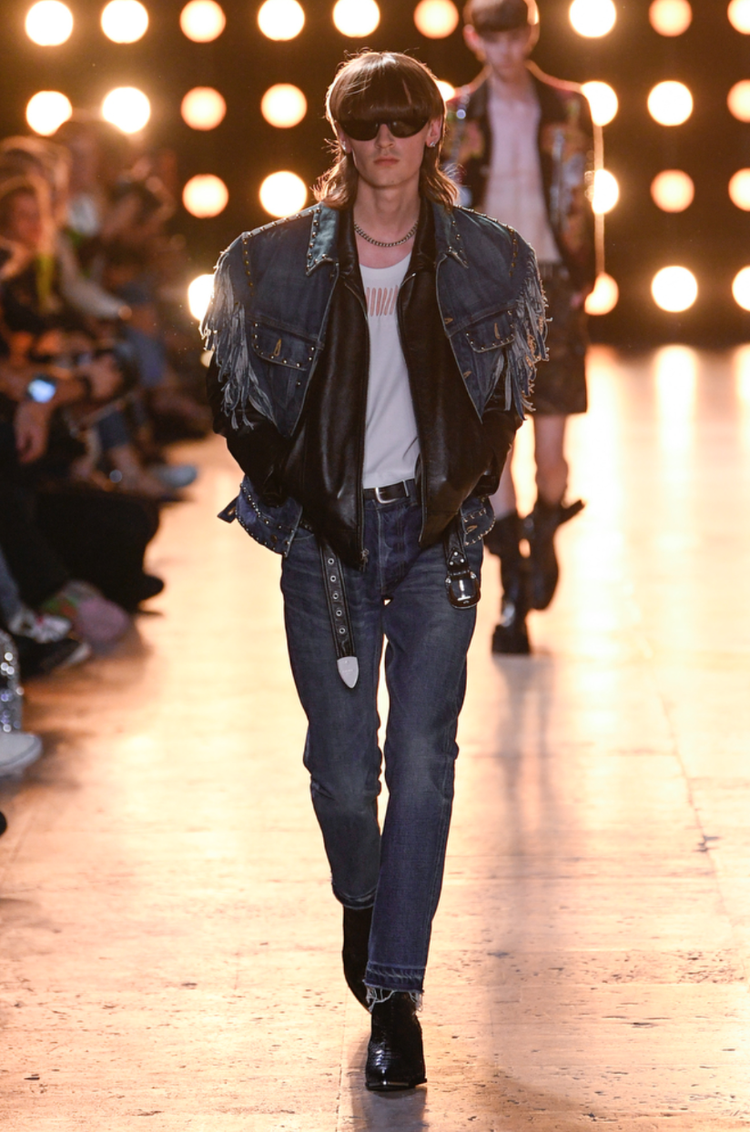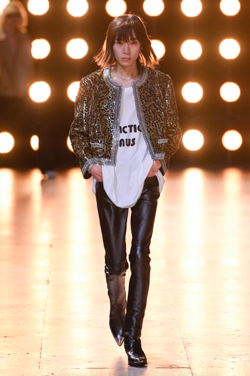 Для своего официального возвращения на парижские подиумы креативный директор бренда - Эди Слиман - выбрал крупнейший в Европе музей современного искусства - Palais de Tokyo. Показ открылся уникальным световым шоу, был наполнен ретро-вибрациями и намеками на рок-эпоху. Модели шли по подиуму в солнцезащитных очках, засунув руки в карманы, под вспышками прожекторов.