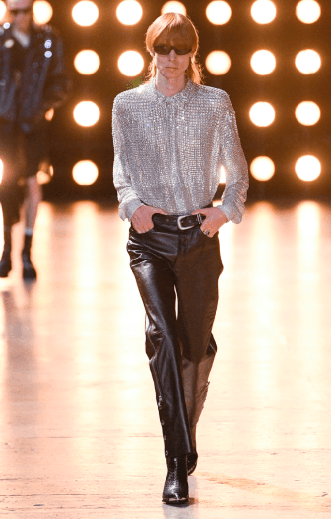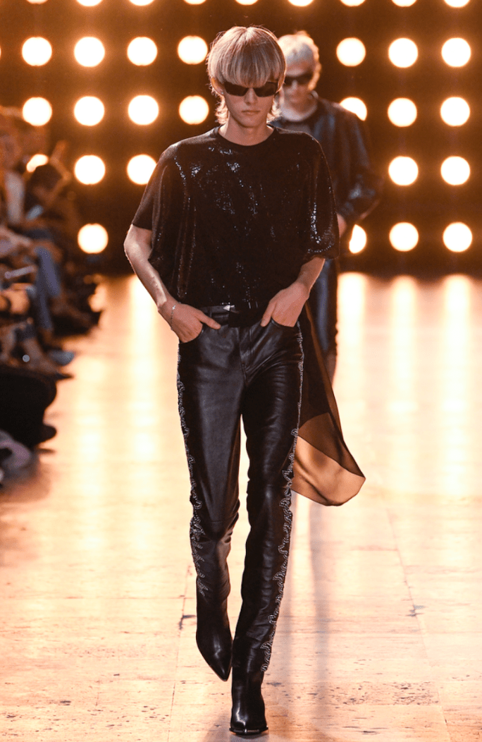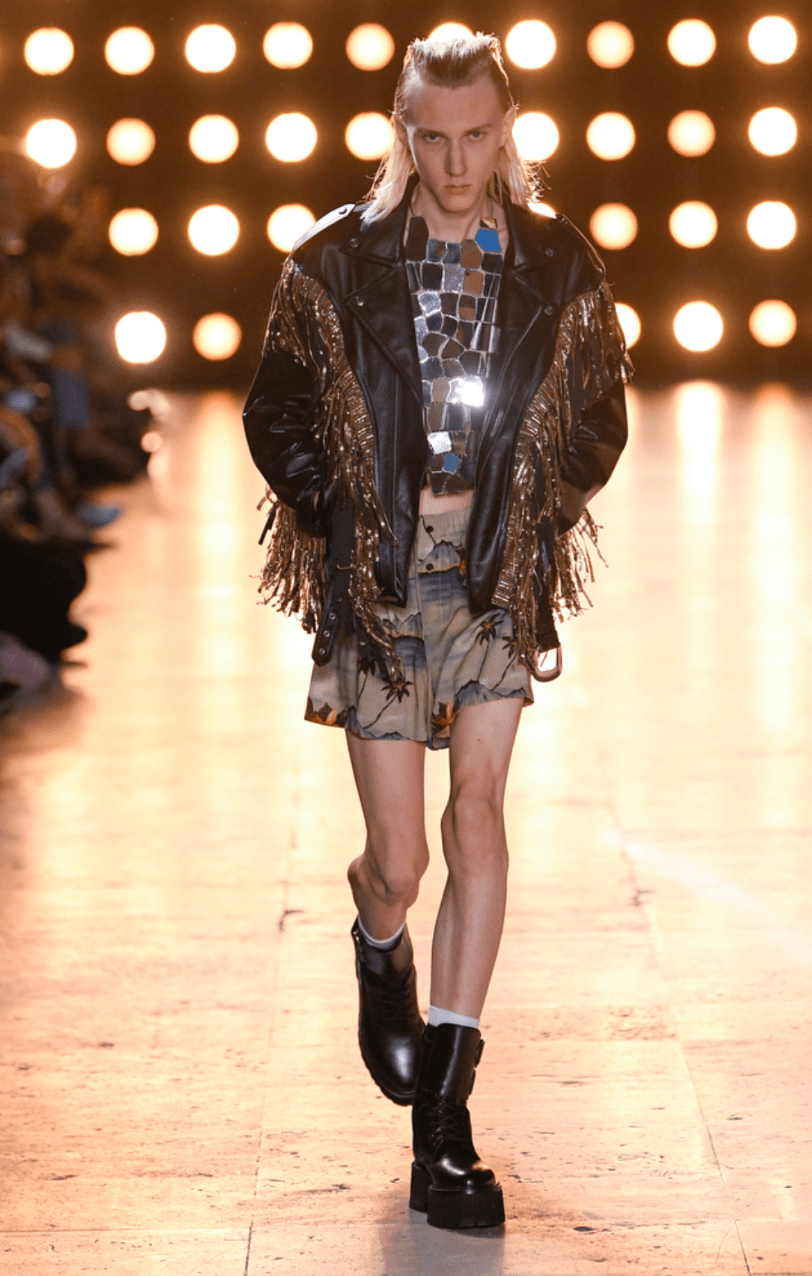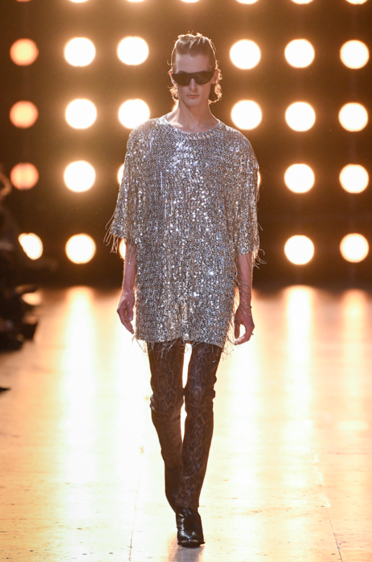 Стоит признать, коллекция действительно словно создана для настоящих рок-звезд. Косухи со стразами, джинсы и прически в духе поздних 90-х, остроносые сапоги - все так и кричит о духе андрогинного рока Дэвида Боуи.