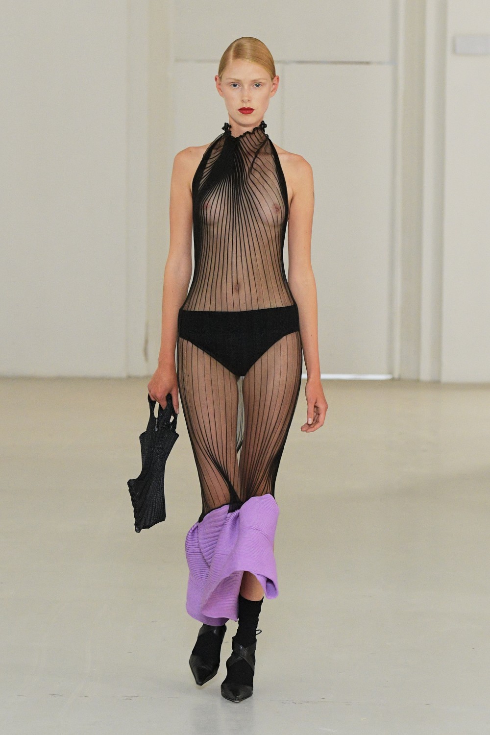 Креативный директор бренда Амалия Рёге Хове одержима трикотажем. Вдохновленные принципом итерации, детали и техники в изделиях повторяются и развиваются на разных этапах - от едва заметных до преувеличенных. Монохромные цвета, которые стали визитной карточкой бренда, в этом сезоне разбавлены вкраплениями зелёного, красного и сиреневого. Коллекция получилась максимально чувственной, демонстрируя верх мастерства в столь узкой нише.