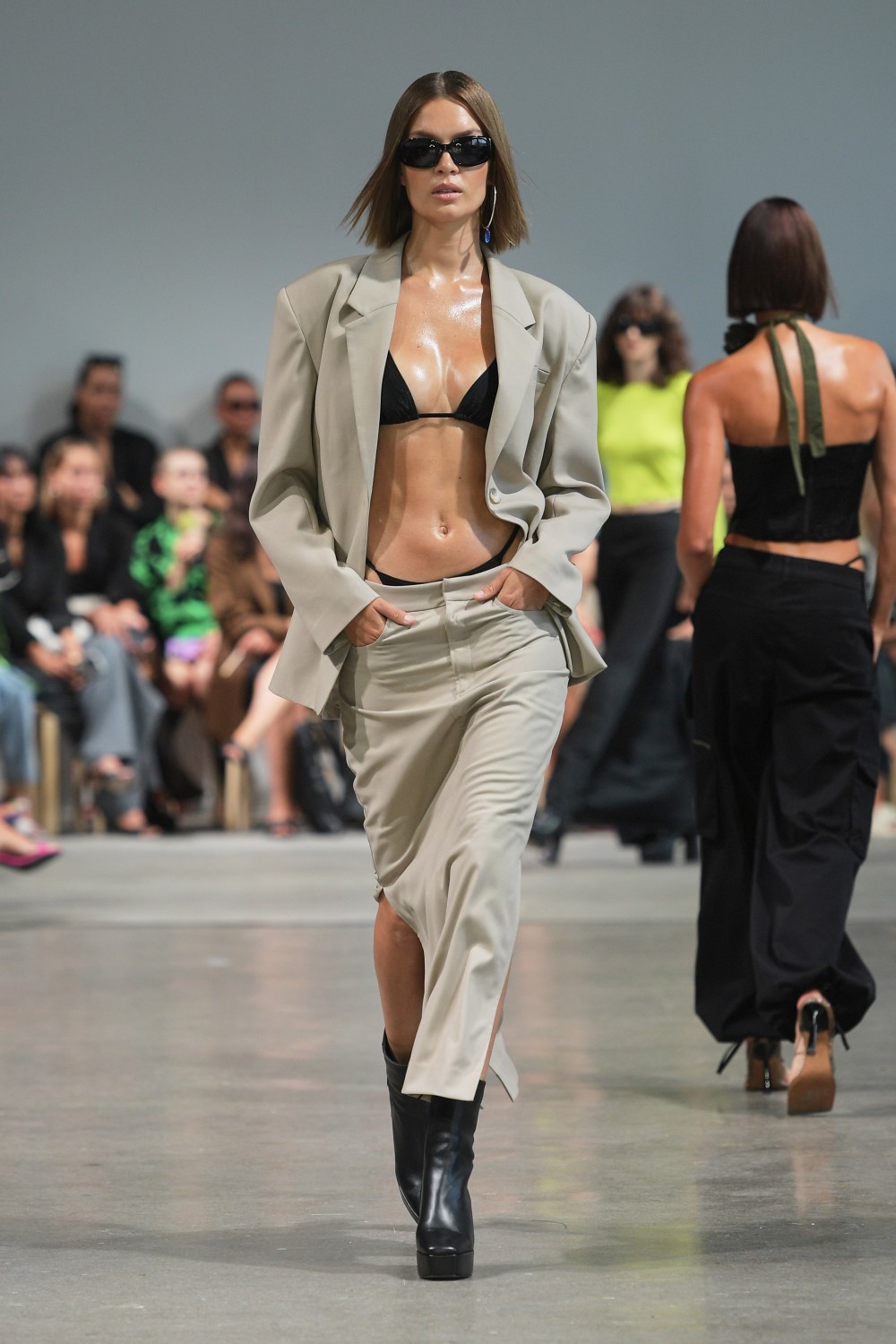 Модели дефилировали в укорочённых топах и жакетах, брюках с заниженной талией, мини-юбках, кожаных куртках и oversize пальто. Все это родом из конца 90-х и начала 2000х. На подиуме также можно было заметить нотки классики в виде тренчей и романтичных платьев. Белье напоказ и очки в стиле Balenciaga несомненно добавили дерзости каждому образу и задали тон коллекции.