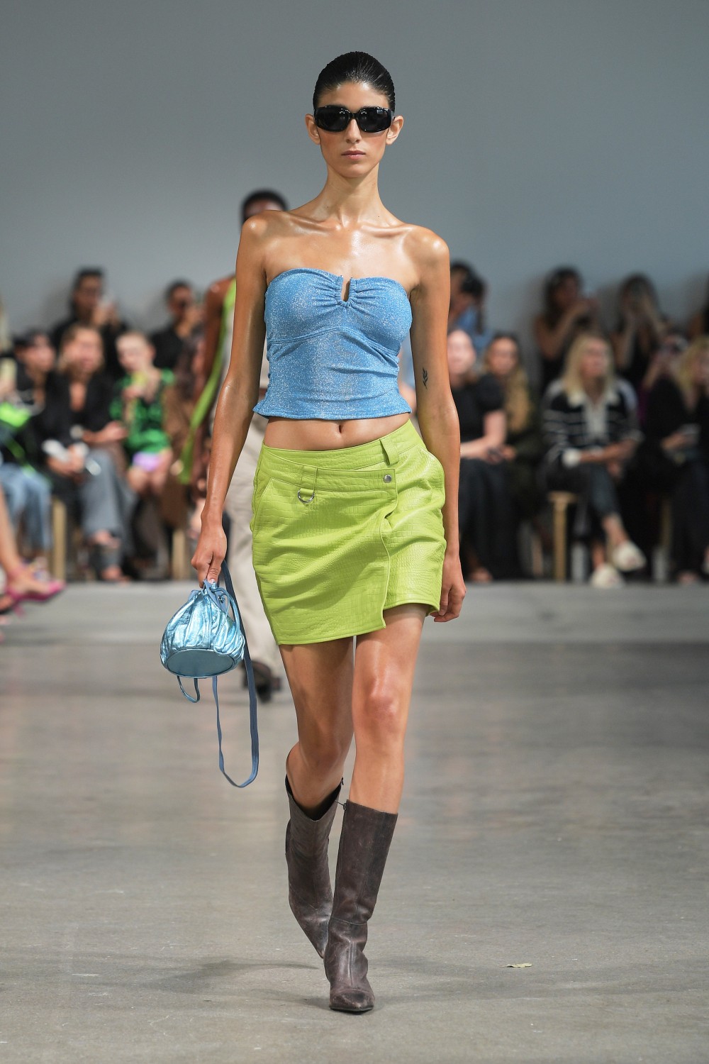 Летняя атмосфера показа была задана пляжными зонтами и стульями, привезенными из Индонезии, а гостей угощали грейпфрутовым напитком и персиками. Ощущение легкости в материале и крое дополнено особой колористикой, которая и является изюминкой бренда. Коллекция наполнена струящимися платьями, яркими костюмами и нарядами с градиентным окрасом. Цветовые ориентиры для этого сезона взяты из картин берлинского художника Льва Хесина.
