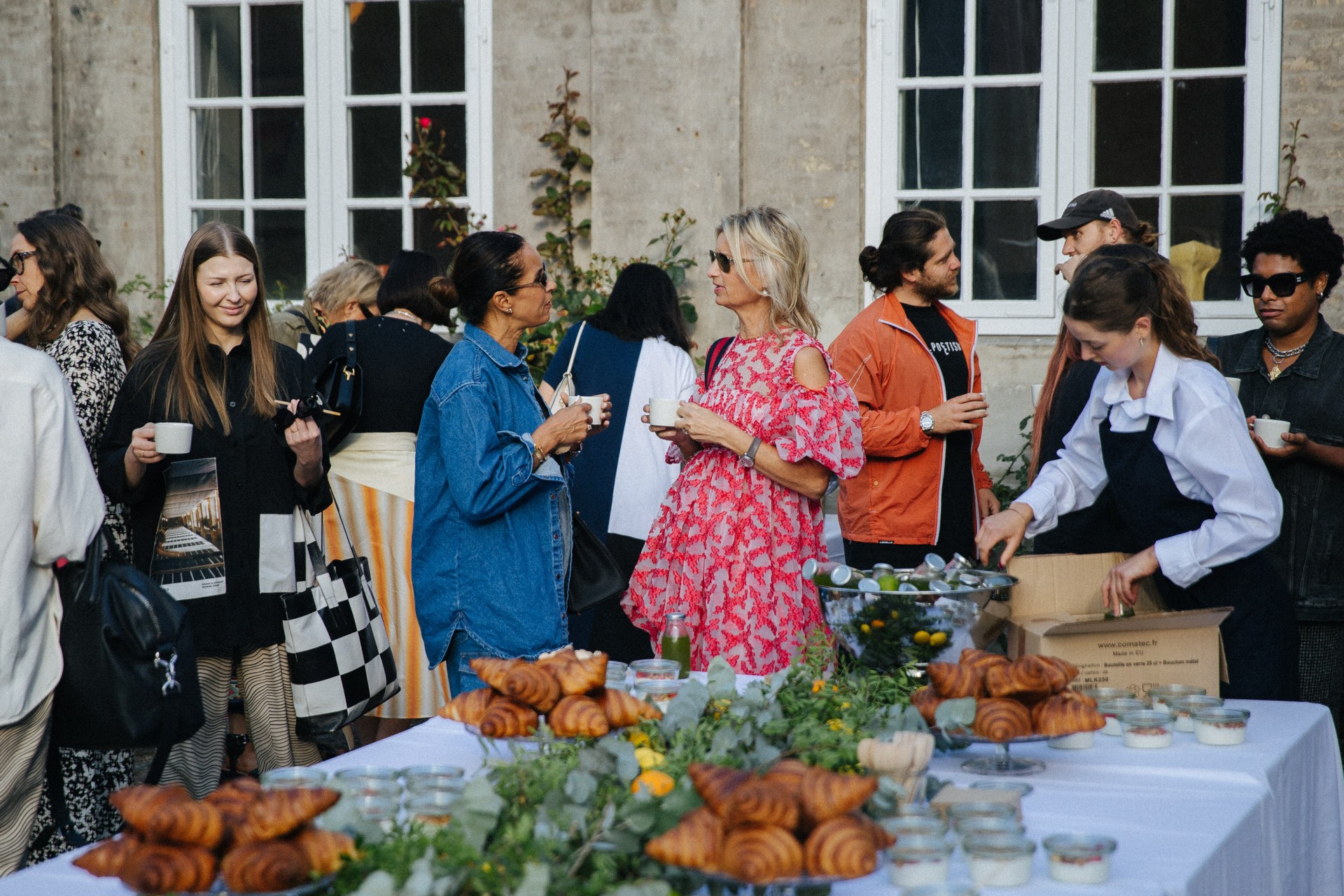 Открытие прошло ранним утром под легкий завтрак в cаду Музея дизайна Дании. Генеральный директор Недели Моды Сесилия Торсмарк рассказала о ключевых моментах: какие цели были достигнуты, будущие планы, партнеры, расписание в целом. И пользуясь случаем она выразила поддержку Украине. Неделя моды в Копенгагене также объявила о новом проекте под названием CPHFW NEWTALENT, которое направлено на поддержку молодых талантов. Участниками на этот раз стали A. Roege Hove, P.L.N. и Latimmier.