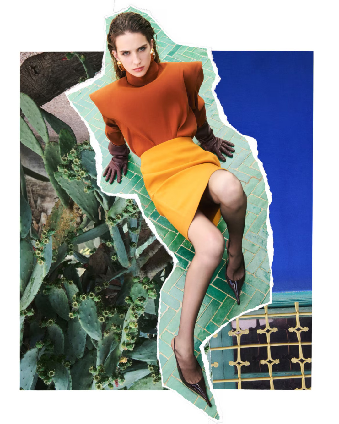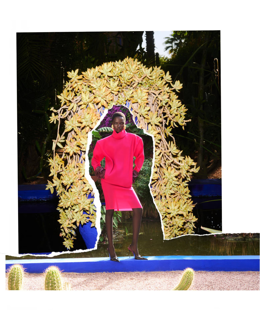 Для съемки он выбрал Villa Oasis — дом, где сам кутюрье однажды почувствовал, что цвет может быть не фоном, а героем. Ваккарелло берет те самые оттенки, что когда-то вдохновили Сен-Лорана, и превращает их в собственный визуальный код. Силуэты становятся резкими и чистыми, линии — точными, словно чертежи.