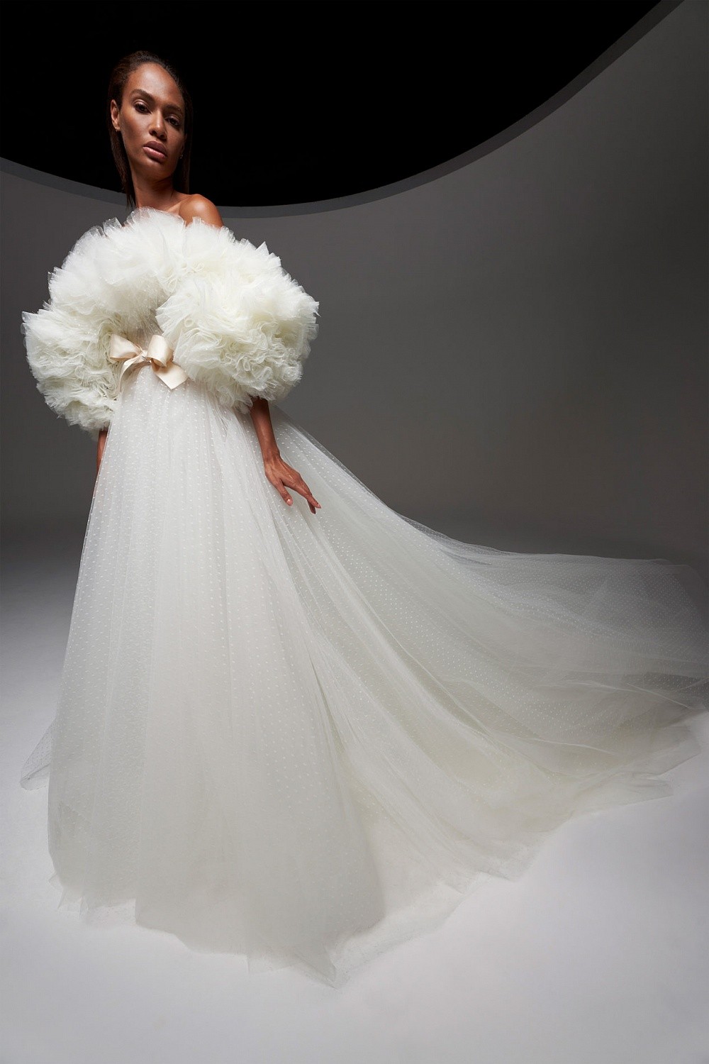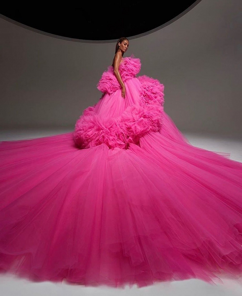 Во вселенной Giambattista Valli не бывает слишком много оборок, фатина, тюля или галстуков-бабочек. В кутюрной коллекции этого сезона дизайнер остался верен себе. Объемные формы, летящие ткани, шифон и муслин в виде лепестков цветка или крыльев бабочки.