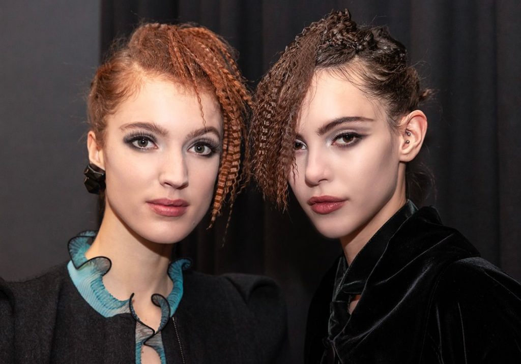 Четкий макияж, прически с гофрированными челками – образы на показе Giorgio Armani прет-а-порте осень-зима 2021/2022 получились насыщенными и чувственными. Акцент на глаза: тушь, карандаш для глаз, жидкие тени для век: и нежно окрашенные губы. Линда Кантелло, международный визажист Armani предлагает этой зимой отойти от естественности и прийти к гламуру.