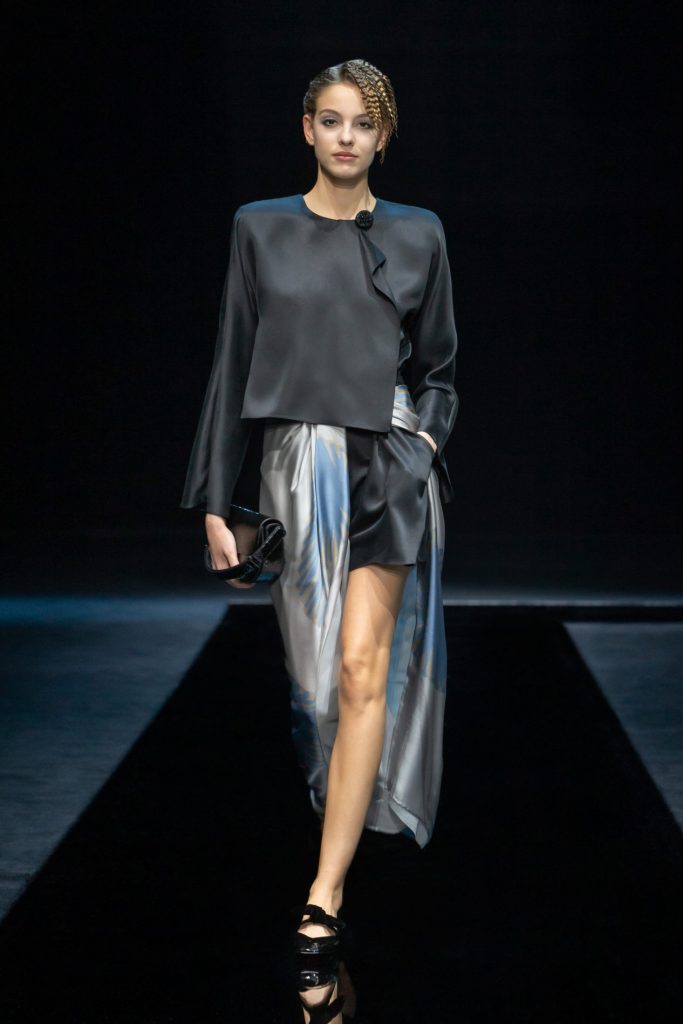 Линда Кантелло. В этой коллекции сопоставилось мужское и женское, словно беседа яркого солнечного дня и нереальной ночи. Макияж стал дополнением коллекции. Он словно рассказал то, что скрыто. В коллекциях Armani всегда есть скрытый подтекст, отсылка к чему-то актуальному.