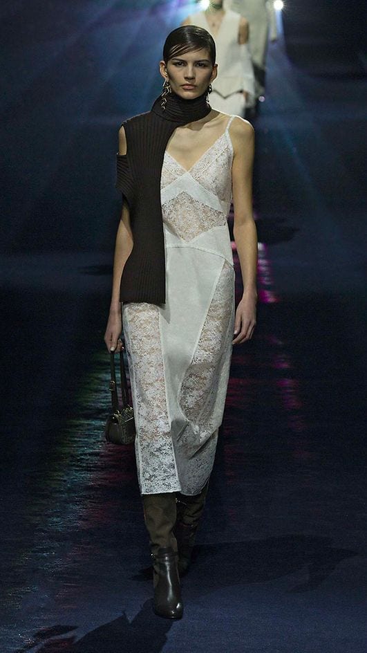 Стоит отметить, что вся коллекция невероятно женственна и современна — все благодаря цветовой гамме и игре с текстурой. Дизайнер наложил кожаные мини-платья на шифоновые рубашки-поло, а свитера шли в комплекте с кружевными топами. Шик, деконструкция и панк-эстетика — оставаться к Fendi безразличным невозможно. Модный дом вновь представил то, что можно назвать интеллектуальной модой.