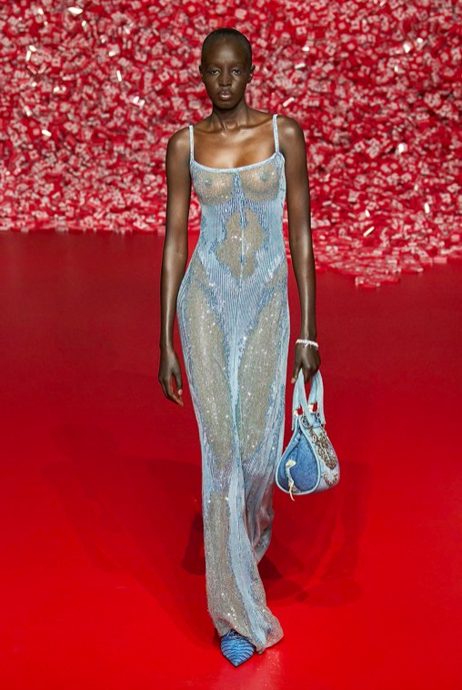 «Sex sells», — заявляет креативный директор бренда Гленн Мартенс последним показом. Он разослал гостям шоу Diesel FW23 приглашения в виде пачки презервативов, для декораций разместил гору из 200 000 контрацептивов и убедил нас в том, что оголиться можно любым возможным способом.