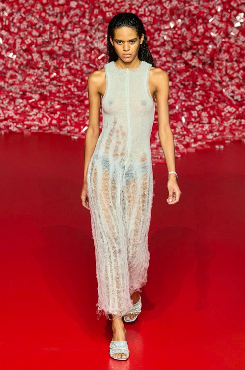 Показ Diesel — отличная иллюстрация к тому, что будет в тренде в следующем сезоне. Настала пора «повидавших время» вещей — на подиуме были представлены состаренные и выцветшие вещи. Также своей коллекцией бренд доказал, что самое время оголяться сеткой в самых непредсказуемых местах. На подиуме был замечен тренд следующего сезона — джинсы с прозрачными вставками. Ранее в рамках Недели моды в Лондоне он был показан в интерпретации Nensi Dojaka.