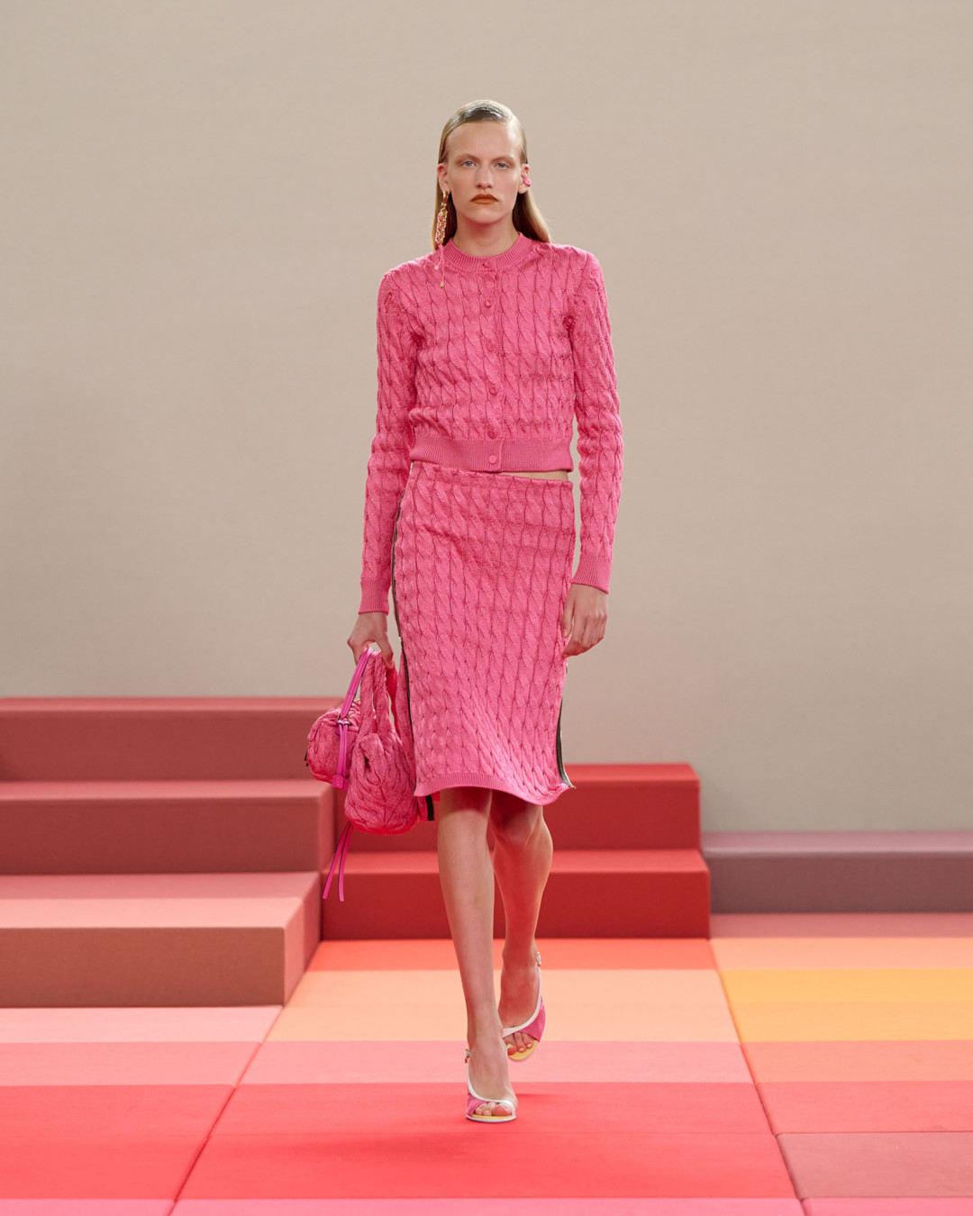 Декорации показа выглядели как пиксельный мир из 80-х, созданный Марком Ньюсоном, — с отсылками к старым аркадам и атмосферой легкого безумия. И одежда подыгрывала этому сеттингу. Fendi, кажется, попрощался с эпохой тихой роскоши и открыл дверь в мир, где мода снова громкая и с искрой в глазах. Даже спортивные элементы здесь стали объектом желания.