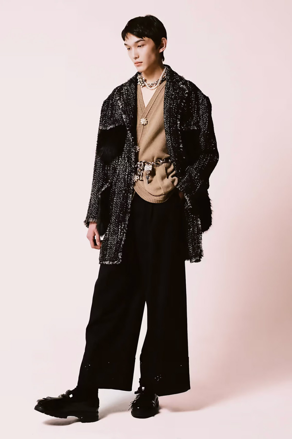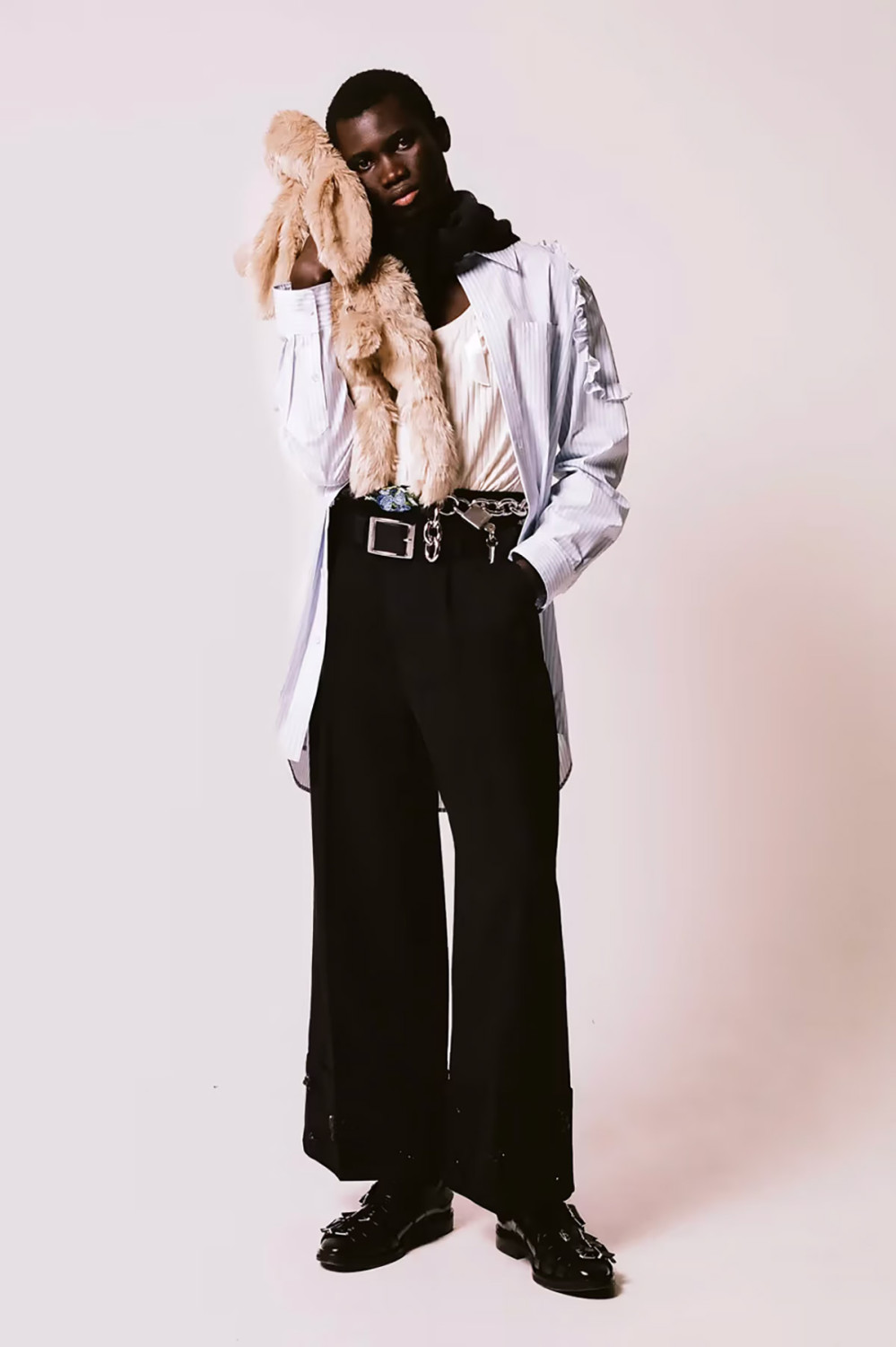 Симон Роша вновь нарушает границы между маскулинным и феминным, игнорируя гендерные стереотипы. В своей коллекции FW ‘25 дизайнер превратила привычные элементы мужского гардероба в нечто неожиданное — нежное, трогательное и почти сказочное.