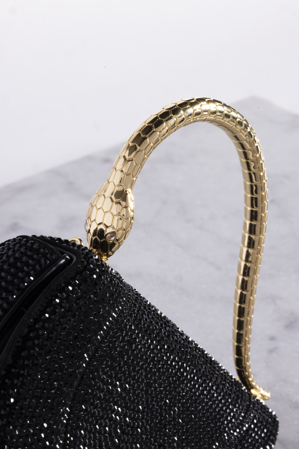 Bvlgari в честь года Змеи Bvlgari представил модель Serpenti Cuore 1968 — аксессуар, который стал главным символом коллекции. Его силуэт в форме сердца словно складывается из двух половинок, а металлическая ручка в виде змеи отсылает к легендарным часам Serpenti Harlequin 1968 года.