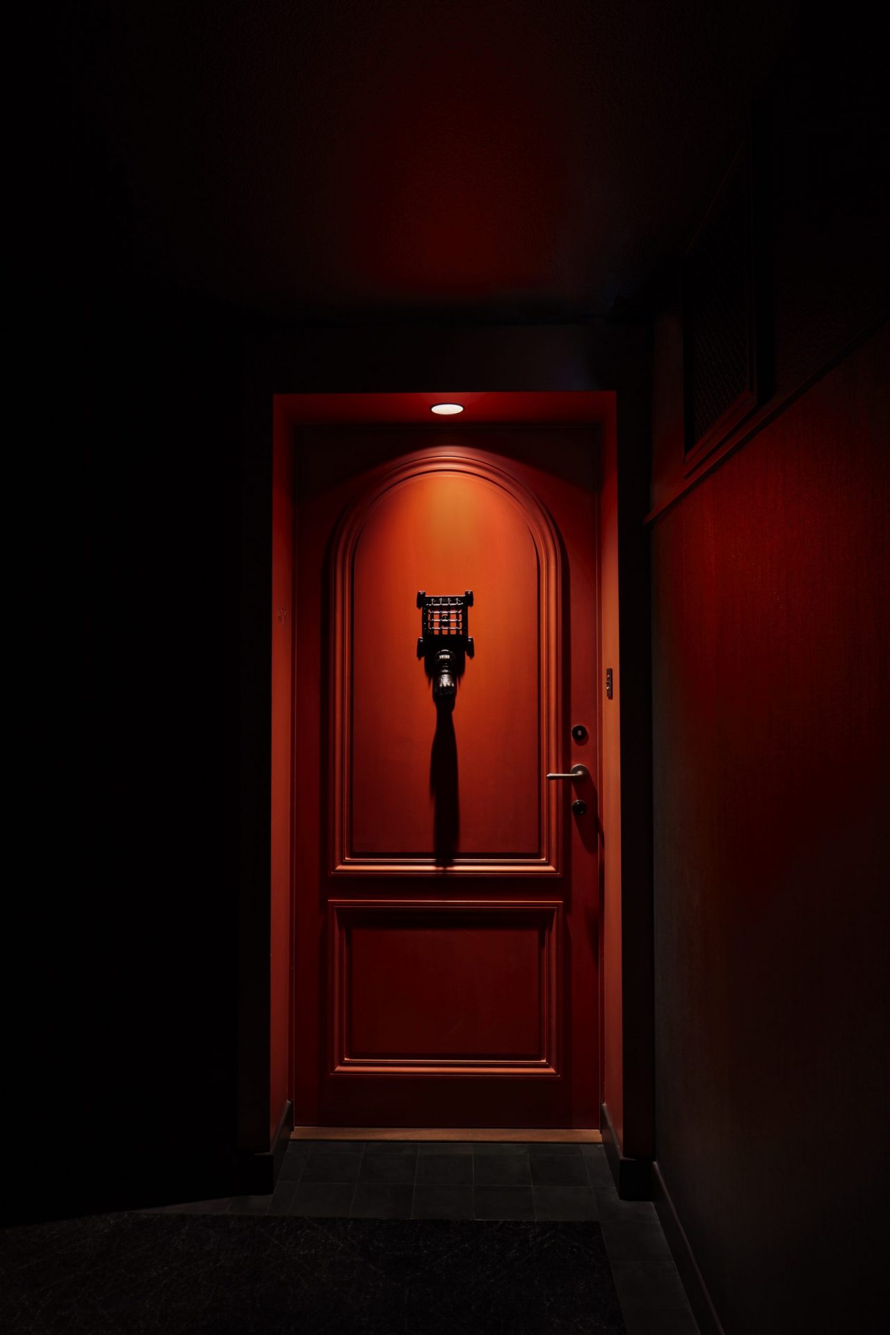 Извилистые коридоры с почти священной атмосферой, освещены игрой света через витражи и фонари, ведут каждого гостя в свой номер. При входе комнат – красные двери с дверными молотками и глазками, напоминающие крыльцо кареты. Вся атмосфера – это приглашение к чувствам через обонятельную вселенную, взаимодействующие материалы и тщательный художественный отбор. И напрочь пропитана таинственностью. К примеру, напротив стойки регистрации склеп при свечах как дань наследию тамплиеров и окрестностям, которые выражают особую индивидуальность.