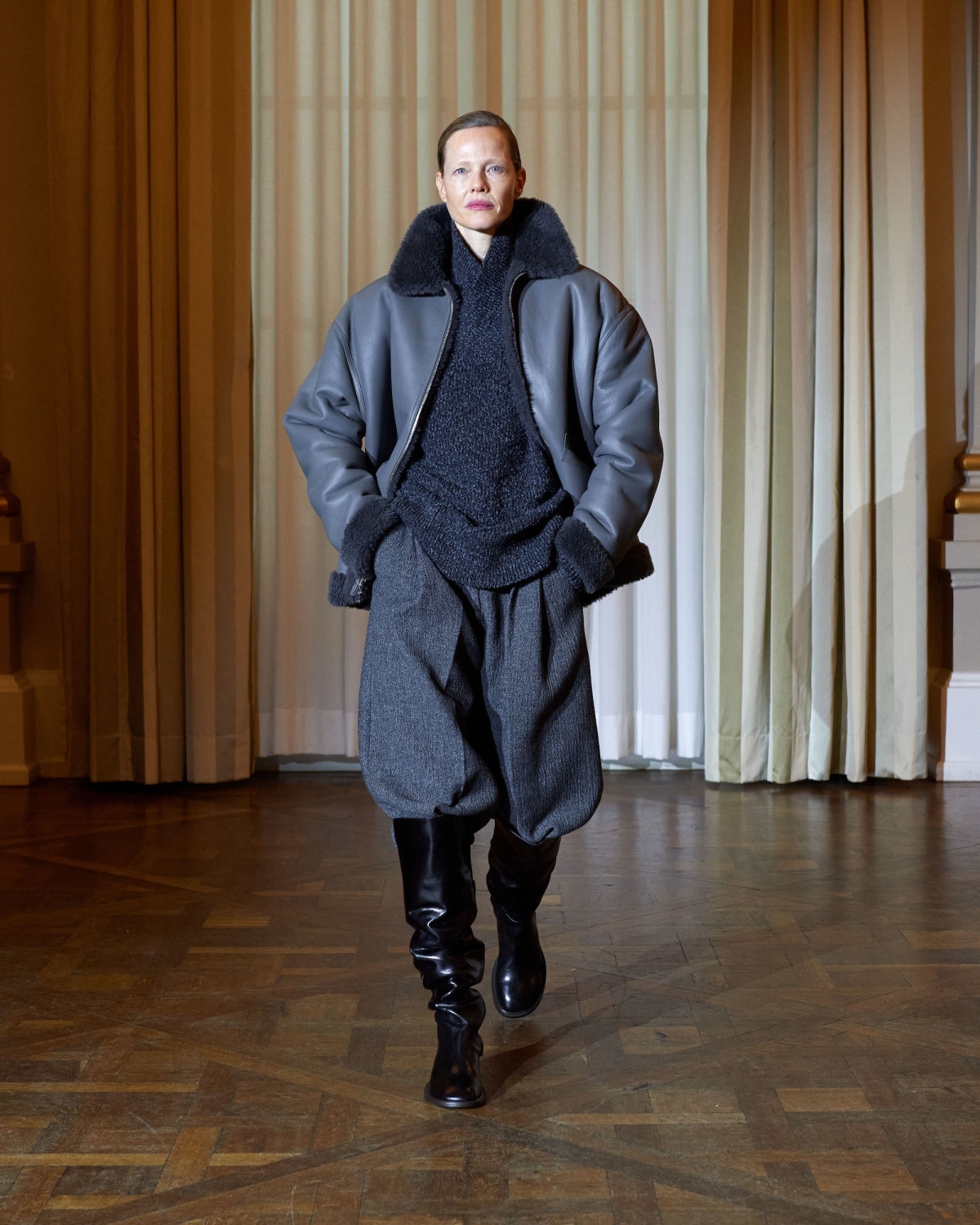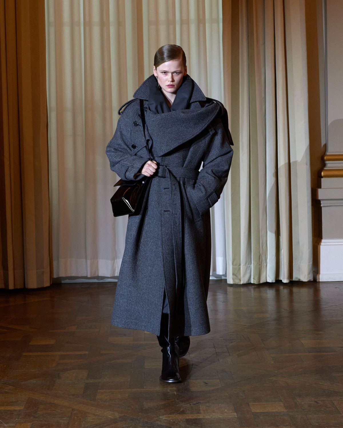 В этом сезоне Skall Studio отметил свое десятилетие и представил коллекцию, в которую вошли вневременные айтемы. Отправной точкой при их создании стали выдающиеся личности Нью-Йорка конца 60-х — именно поэтому некоторые модели несли в руках записные книжки.