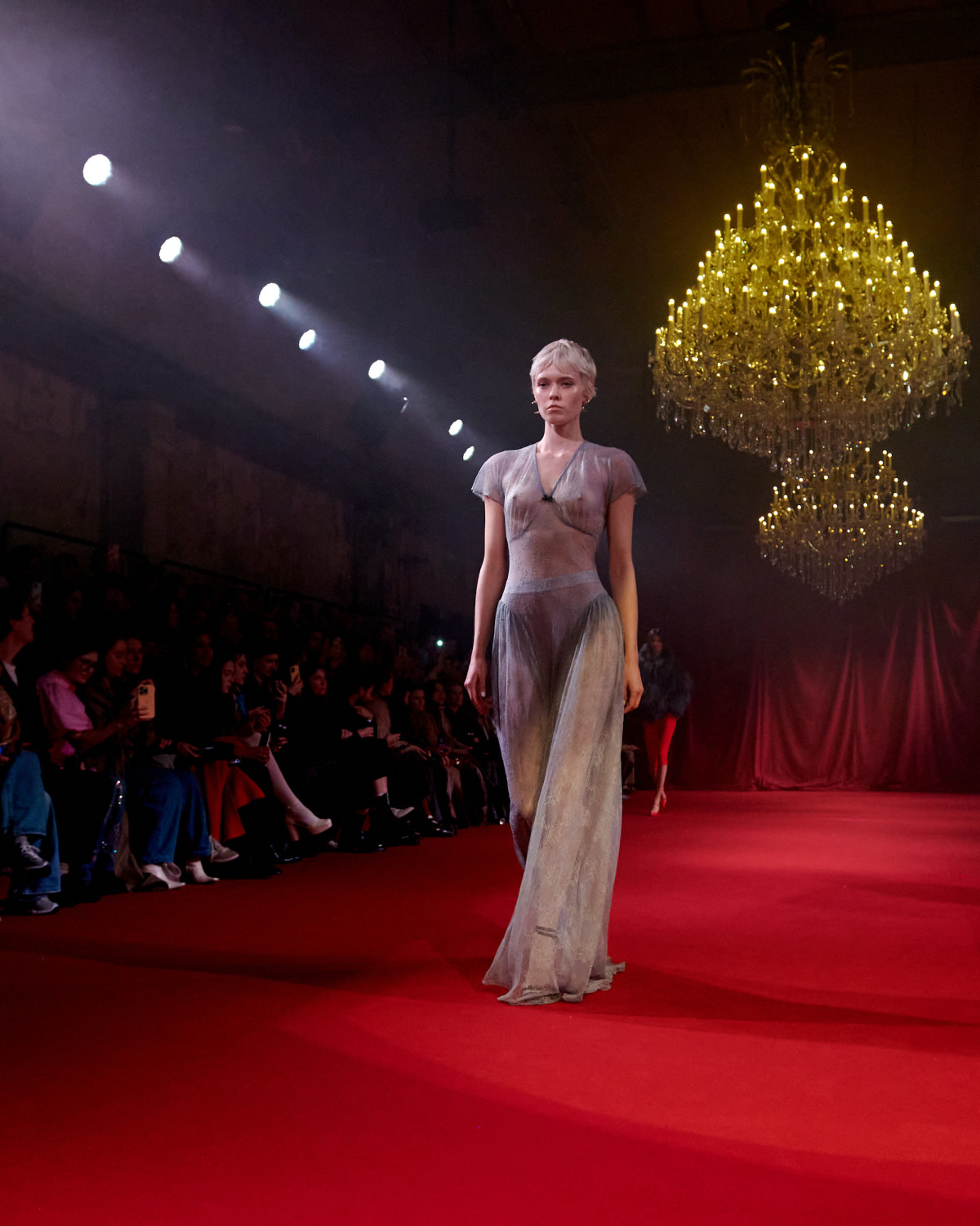 Атмосфера показа и одежда была вдохновлена дискотеками конца 70-х и начала 80-х. В коллекции «праздничные» нотки органично сливались с повседневностью. По словам дизайнера, это история о музе, которая привнесла элементы праздника во все сферы своей жизни.