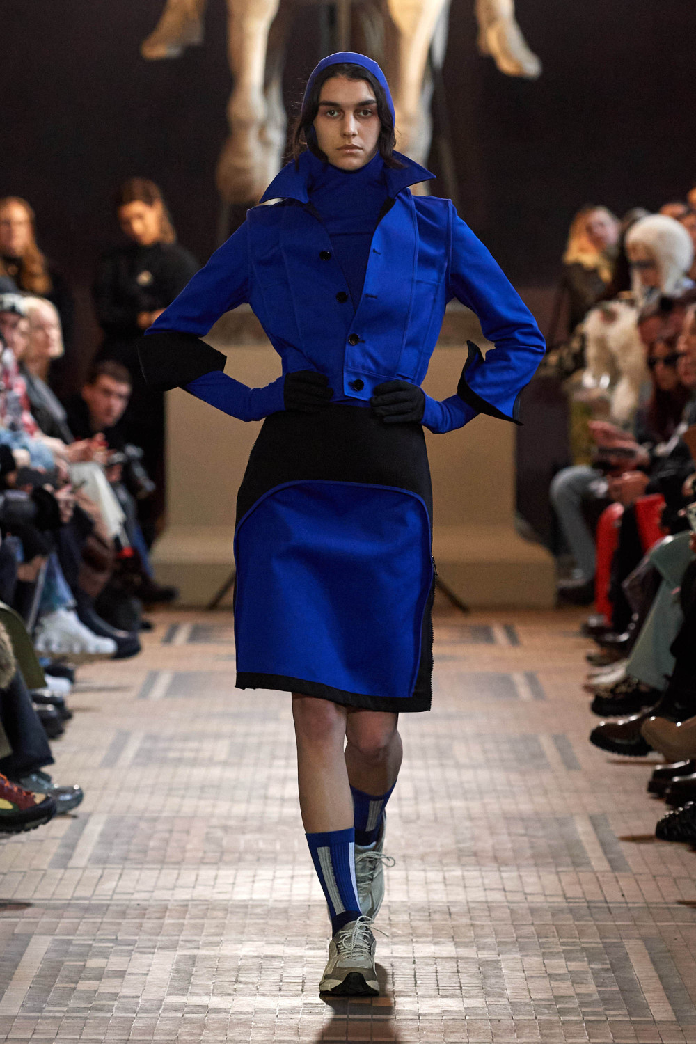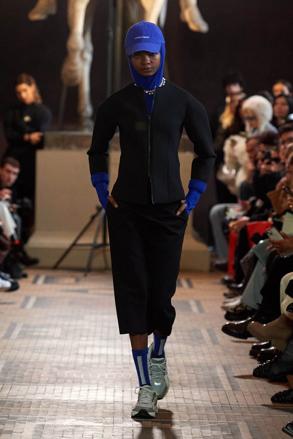 Центральным элементом новой коллекции бренда стала футбольная тематика. Некоторые модели несли черные спортивные мячи, заключенные в серебряные цепочки. Они предстали в свободных толстовках с объемными рукавами, нарощенных волосах ниже колен и oversize-штанах. Завершающим акцентом образов стали ботинки до бедра со сборками.
