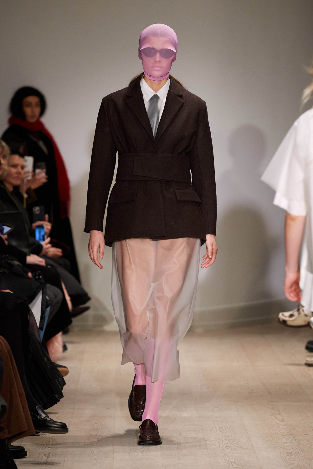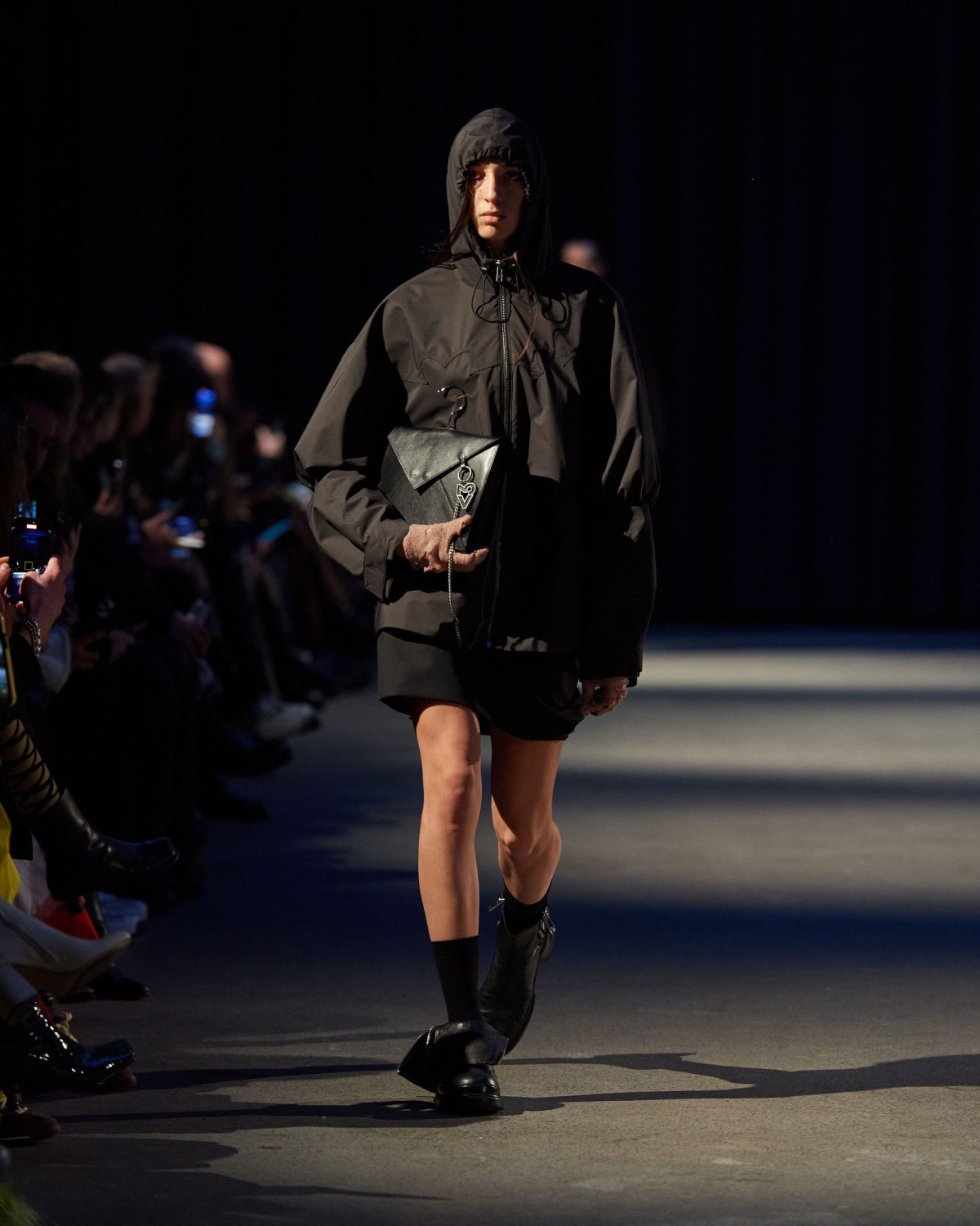 Говоря об образах, то коллекция Stamm выделяется на фоне предыдущих. От постельного белья до мокрых полотенец — бренд переосмыслил привычные нам предметы и представил образы с преувеличенными формами. Огромные пуховики превратились в укороченные топы и накидки, а дополнением им послужили сумочки-наволочки.