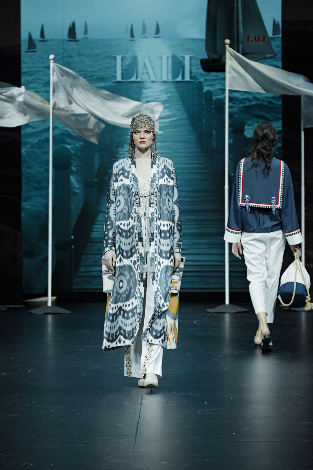 В линии осень/зима-2024 Лали обратилась к теме tribal chic — на подиуме мы увидели обилие узбекских принтов. От изысканной голубой накидки до костюма-двойки в пастельных тонах — сквозь всю коллекцию можно было заметить то, с каким трепетом дизайнер относится к восточной культуре. Колоритные чокеры и серьги, шашбау и игриво надетая на одну сторону тюбетейка — ее страсть к этнике нашла отражение и в украшениях, которые стали прекрасным завершением образов.