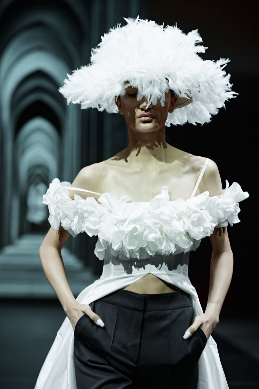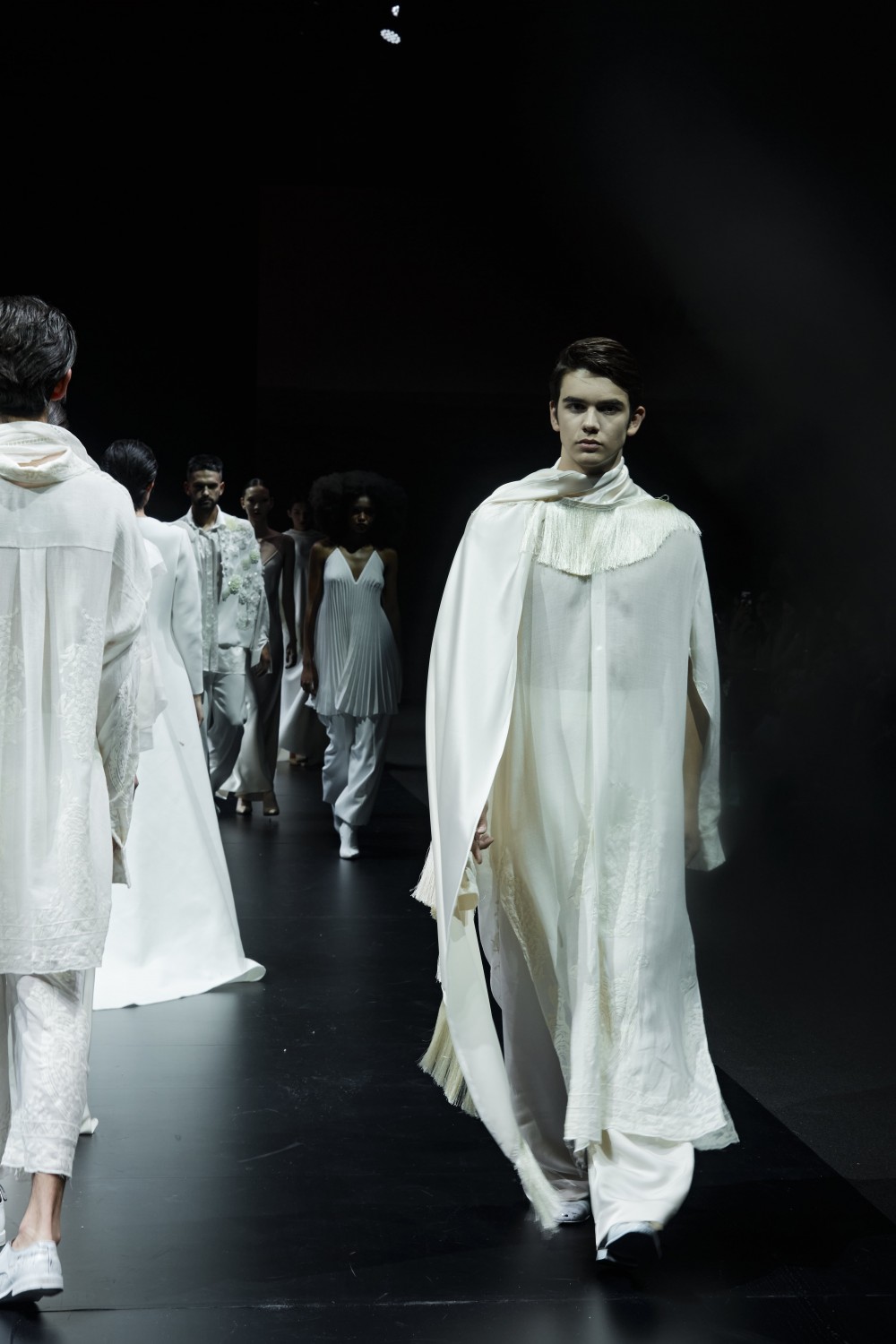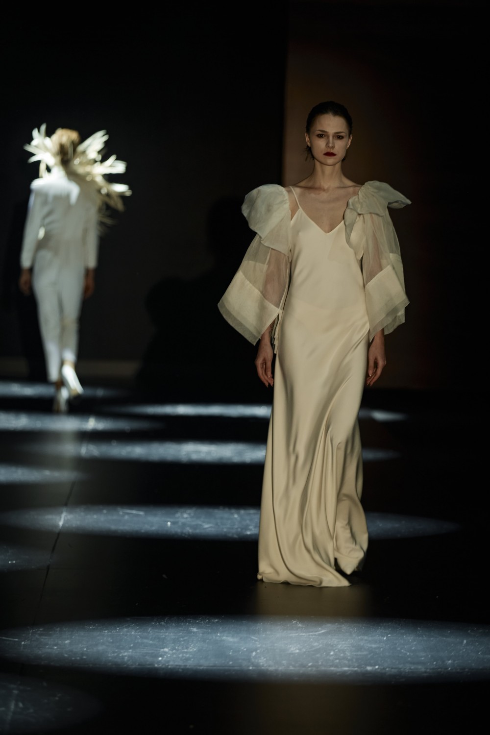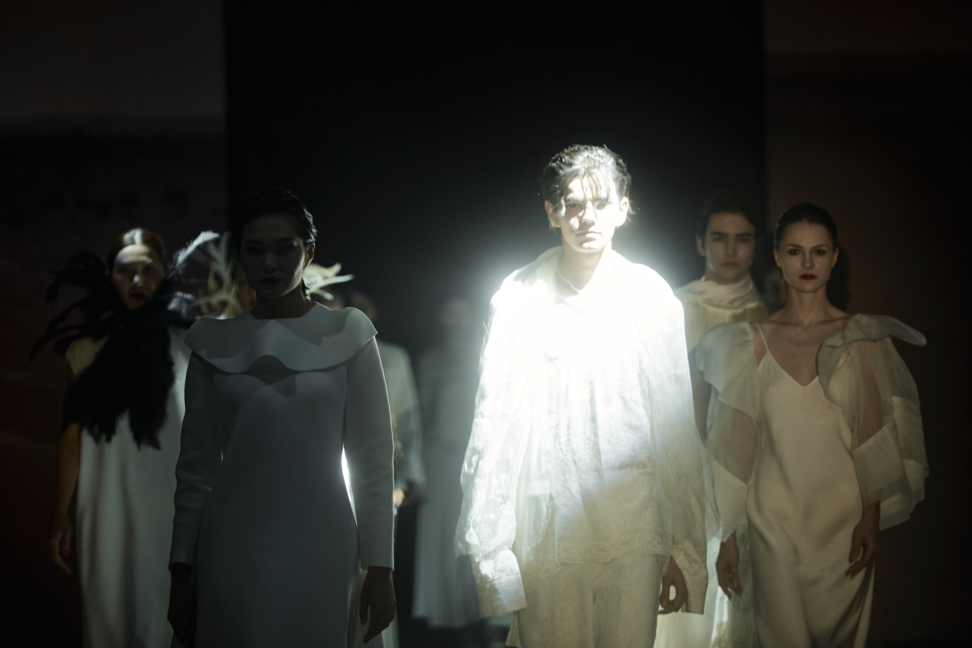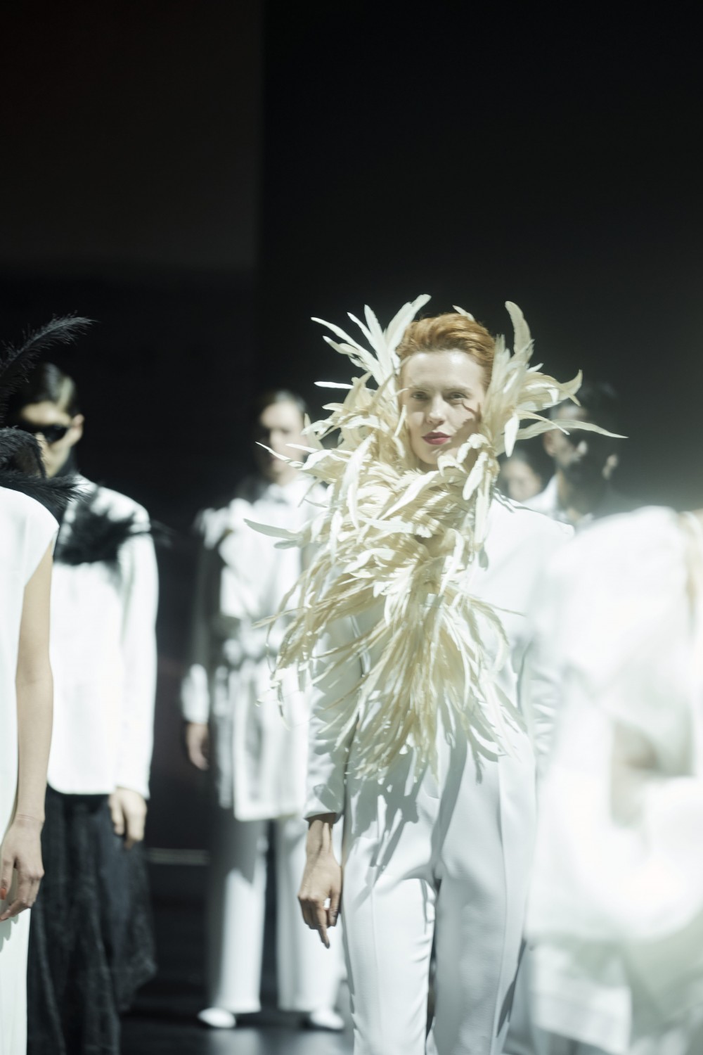 Простота линий и необычные отделки, утонченность и богемность — коллекции Датуны Суликашвили находятся на тонком пересечении между абсолютно полярными направлениями. Он редко обращается к ярким тонам. И в этой коллекции дизайнер остался верен себе. Ставка была сделана на цвет безмятежности и чистоты — белый. Модели напоминали ангелов, спустившихся с небес. Они предстали на подиуме в белоснежных образах, выполненных из струящихся и воздушных материалов — шелка и органзы. Некоторые из нарядов были дополнены трендовыми перьевыми вставками. Умиротворенность, женственность и легкость — все это соединила в себе последняя капсула Datuna.