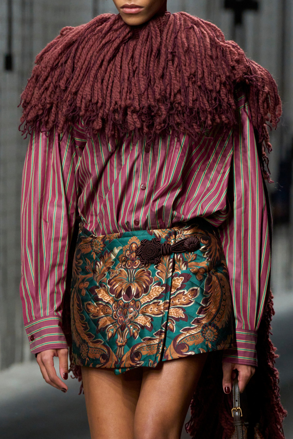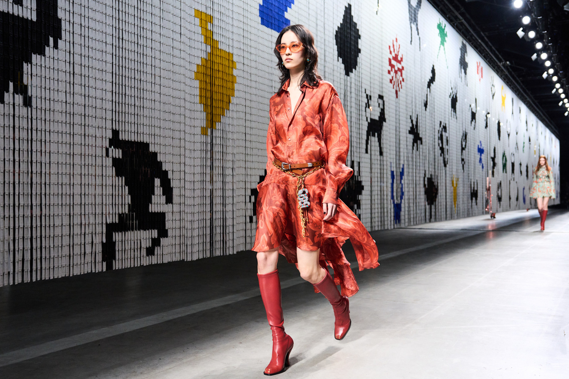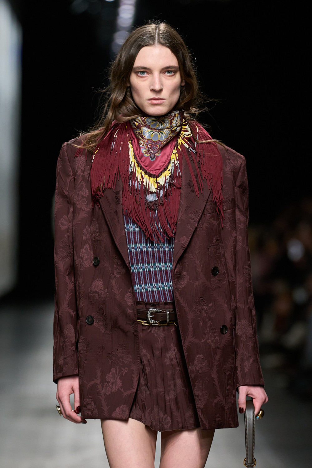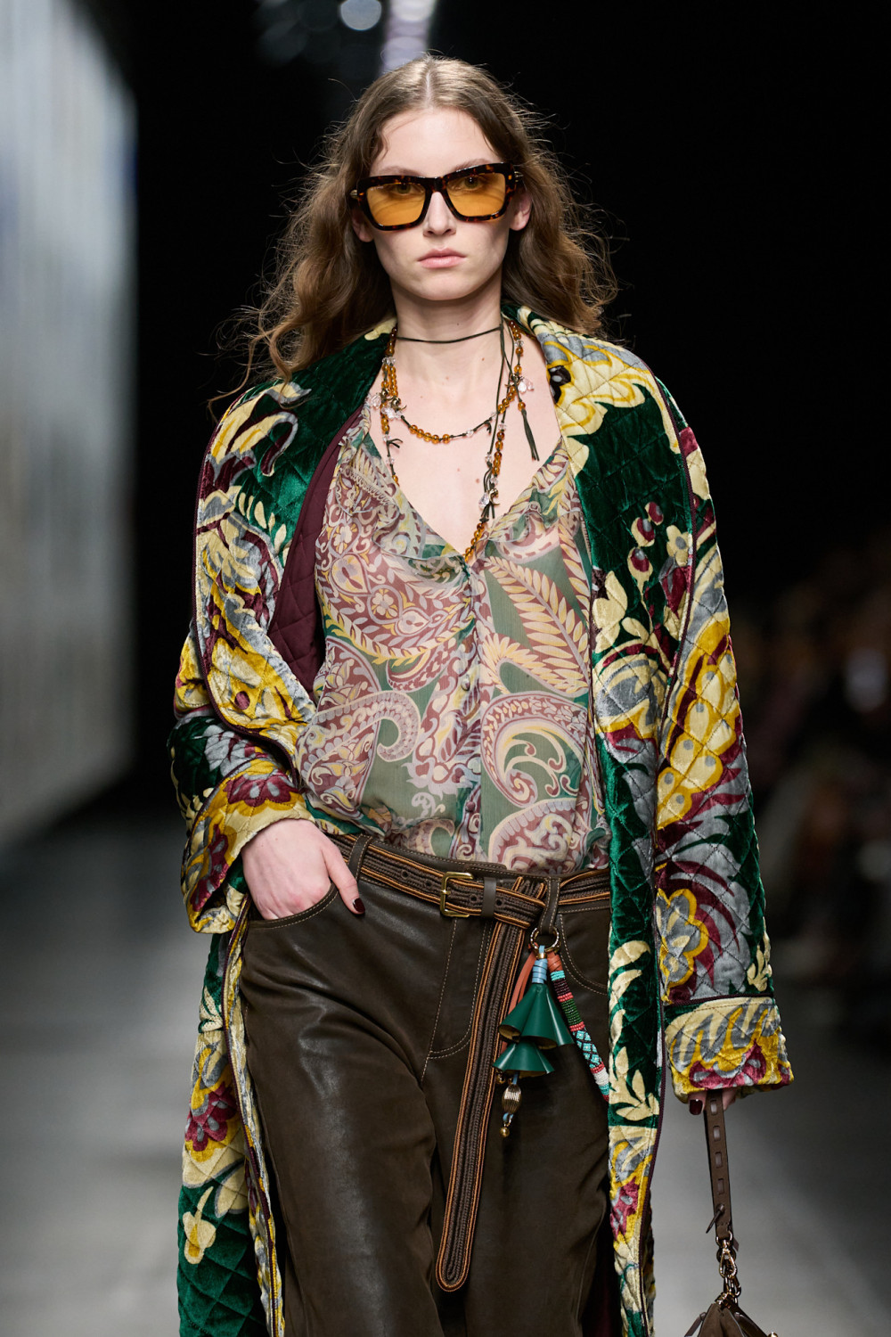 Что получится, если переплести древние мифы, космическую семиотику и ДНК Etro? Всплеск магмы идей — именно так видит это Марко Де Винченцо. Вдохновившись легендой о слезах египетского бога Ра, превращающихся в пчел, и теориями Уильяма Берроуза, для которого язык — это вирус, дизайнер создал коллекцию, балансирующую между мифом и реальностью.