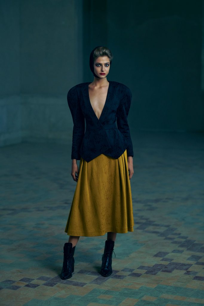 Дом моды Ulyana Sergeenko представляет новую осенне-зимнюю коллекцию Demi-Couture, в которой силуэты разных эпох и стилей органично сочетаются и дополняются авторскими принтами бренда. В коллекции представлен большой выбор изделий: мини- и миди-платья с различными декоративными деталями и вырезами, жакеты и укороченные блузы с объемными плечами, юбки разных фасонов и длины, комбинезоны, кашемировые пальто, свитеры и трикотажные костюмы.
