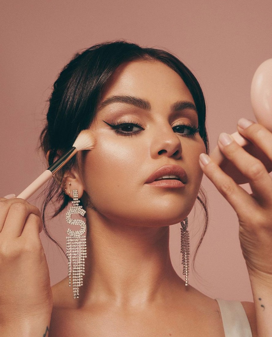 Бьюти-рутина по-настоящему роскошная — такой уход обойдется в 290 000 тенге. Селена начинает очищать лицо с помощью сыворотки La Mer (230 000 тг.). Затем она переходит к мицеллярной воде Sensibio H2O Micellar Water от Bioderma (8 000 тг.). Следующий этап — тоник Dermologica (18 000 тг.), который звезда наносит с помощью многоразовых дисков Face Halo (10 000 тг.). Заключительная ступень в ее бьюти-рутине — продукты ее бренда. Она наносит крем-сыворотку под глаза Rare Beauty glow (11 000 тг.) с помощью бьюти-блендера (9 000 тг.).