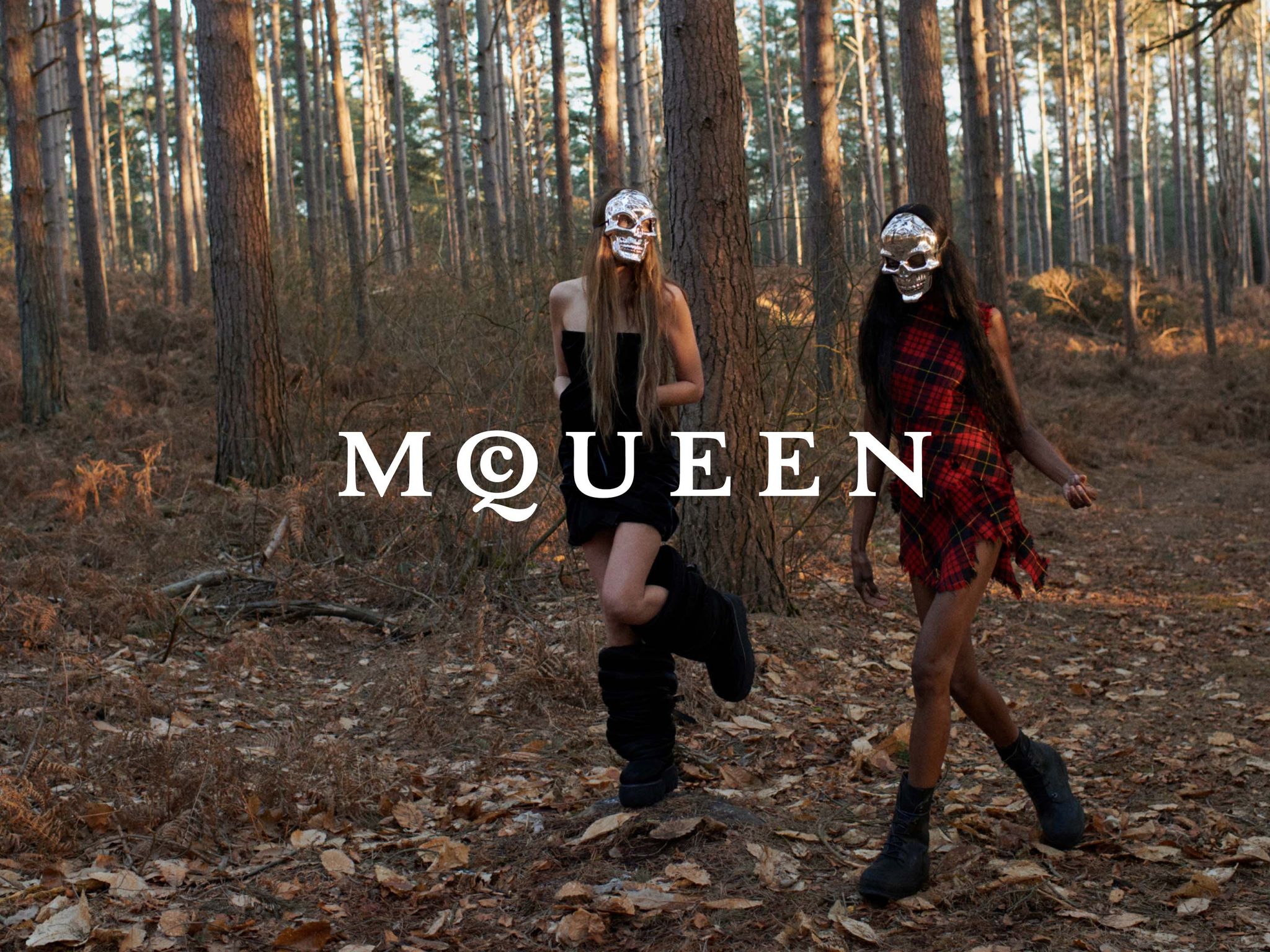 В серии снимков снялись Дебра Шоу и Фрэнки Рейдер. Обе модели работали с основателем бренда Александром Маккуином, который скончался 10 лет назад. Они позируют на фоне дремучего леса в масках из черепов, отсылающих к знаковому мотиву дома.
