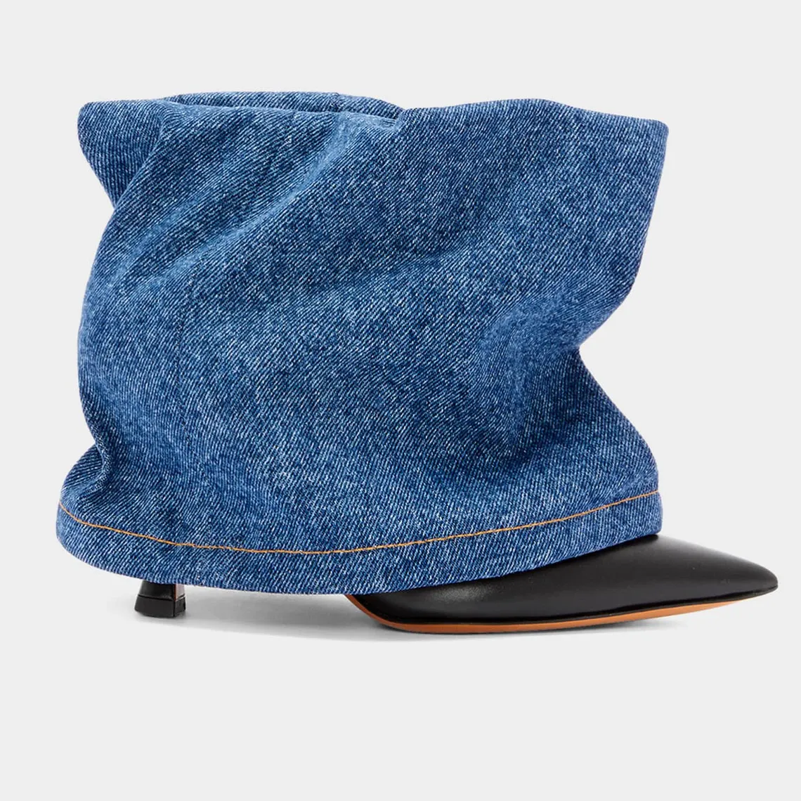 «Деним в моде», — так и кричали подиумы в этом году. Дизайнеры не стали ограничиваться лишь джинсами и рубашками из денима. Сумки, шляпы и даже сапоги — безграничный полет фантазии. Джулия Фокс и вовсе пошла ва-банк — она соорудила топ-бандо из поясов джинс.