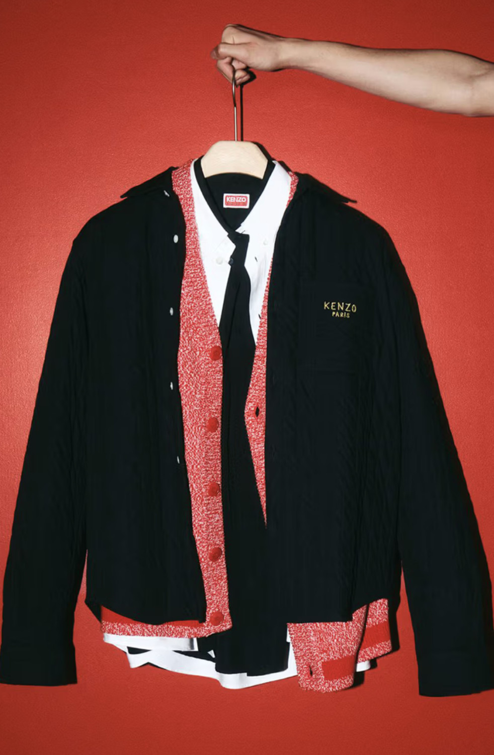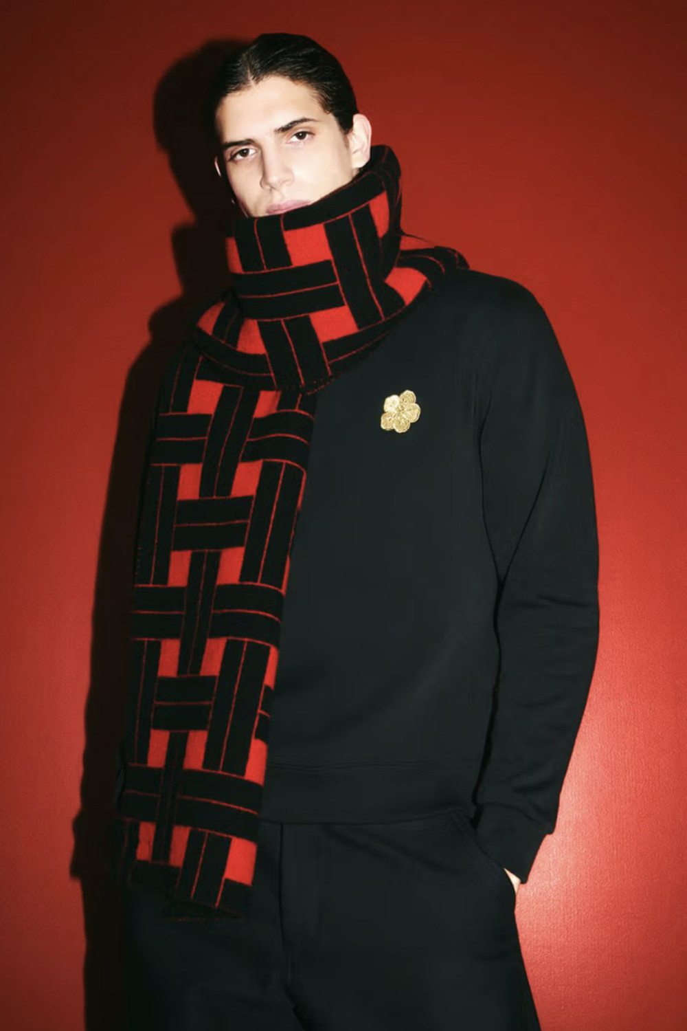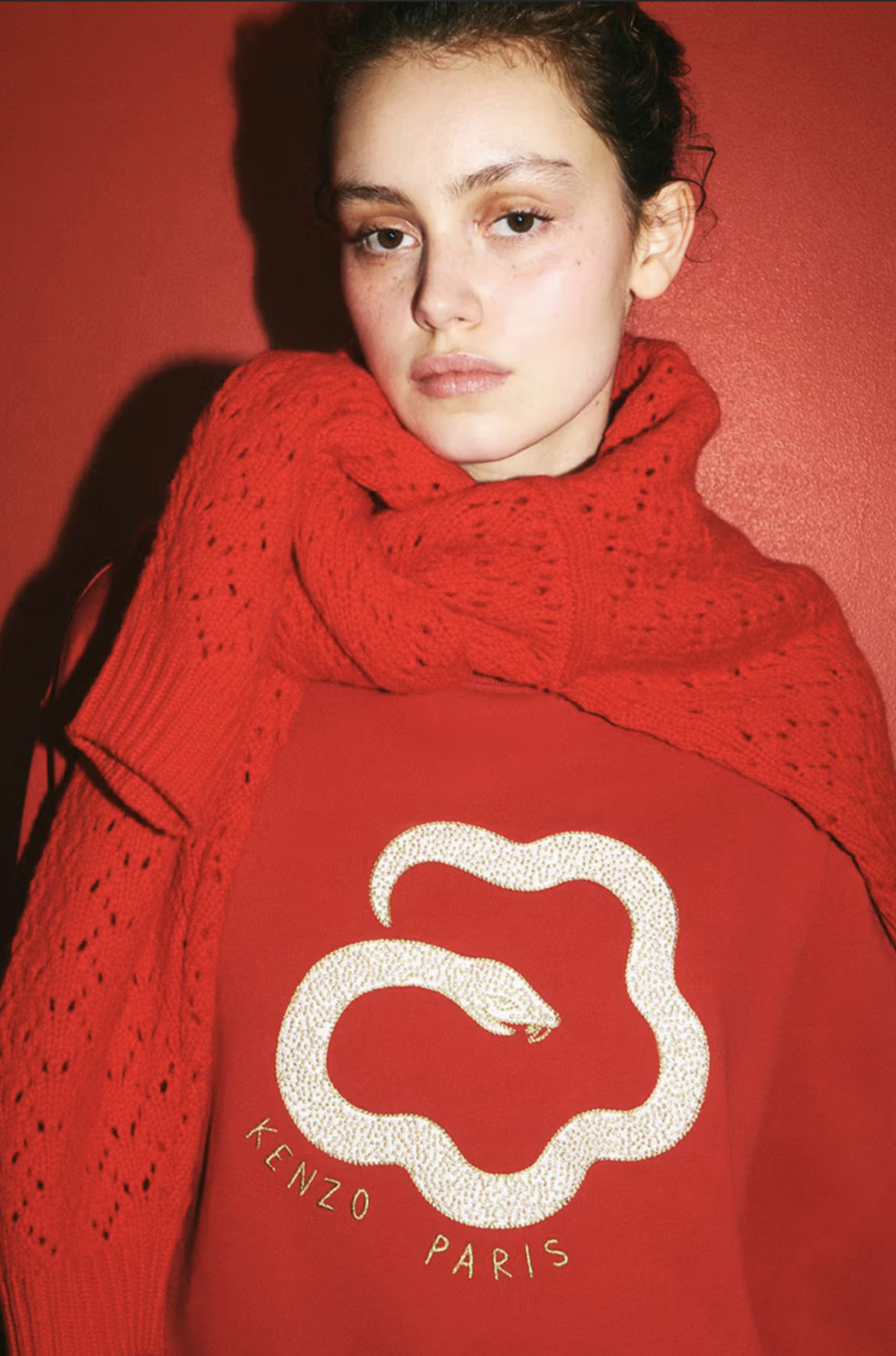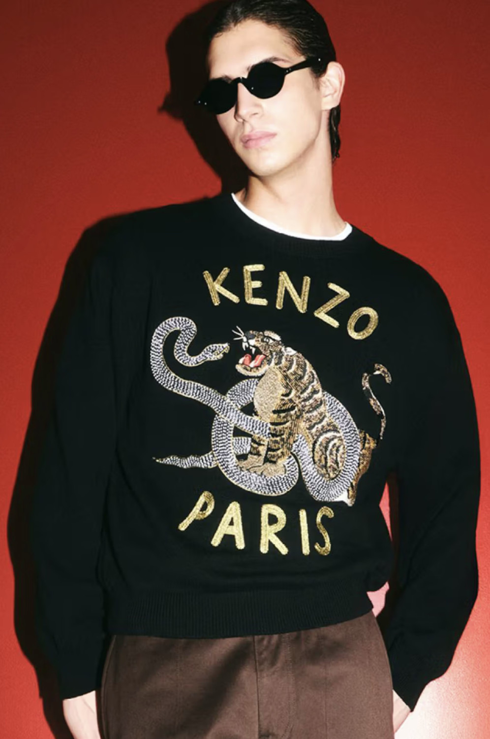 Коллекция выполнена в минималистичной цветовой палитре, состоящей из трех цветов: белого, черного и красного. Одной из главных ее жемчужин стал свитшот с изображением тигра и змеи, переплетенных в динамичную композицию и обрамленных золотыми нитями с надписью Kenzo Paris. А для тех, кто предпочитает минимализм, марка предлагает базовые черные и красные модели, дополненные вышивкой цветка Boke на груди.
