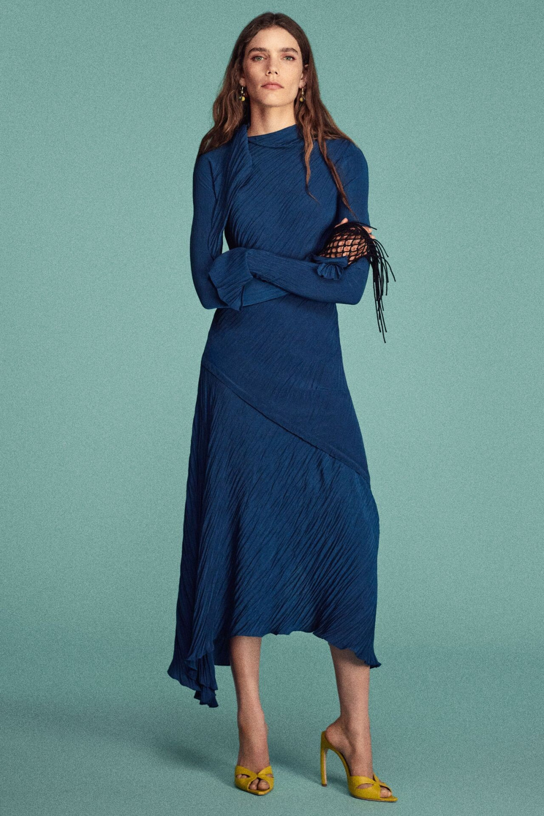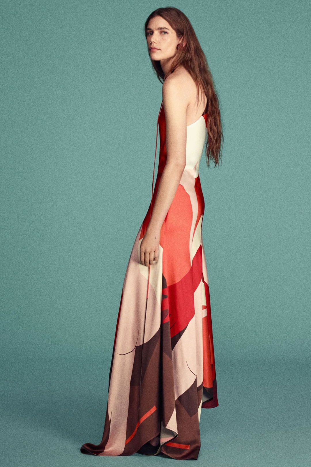 Коллекция впитала это чувство театральности и пропустила его через призму современной эстетики. Среди ключевых моделей — макси-платье Victoria с небольшим V-образным вырезом, деликатной сборкой на бедре и асимметричным подолом, а также шелковые силуэты, покрытые абстрактными рисунками, будто перекликающимися с работами Пикассо или Матисса.