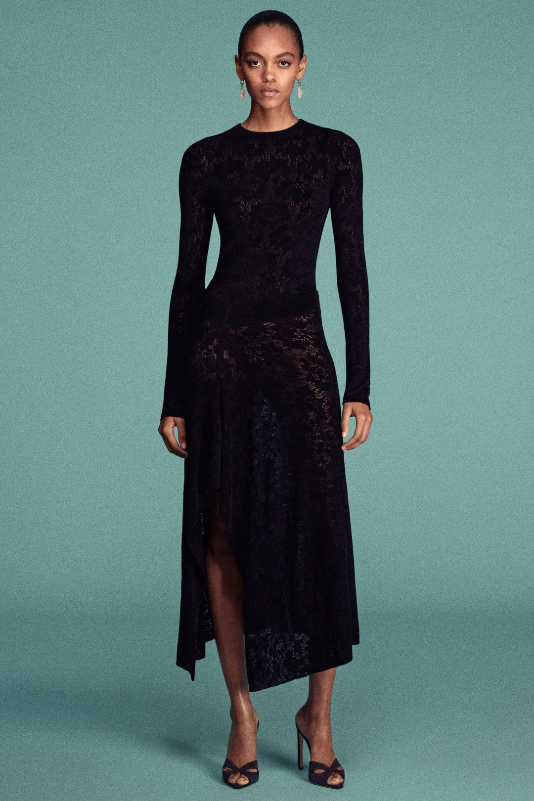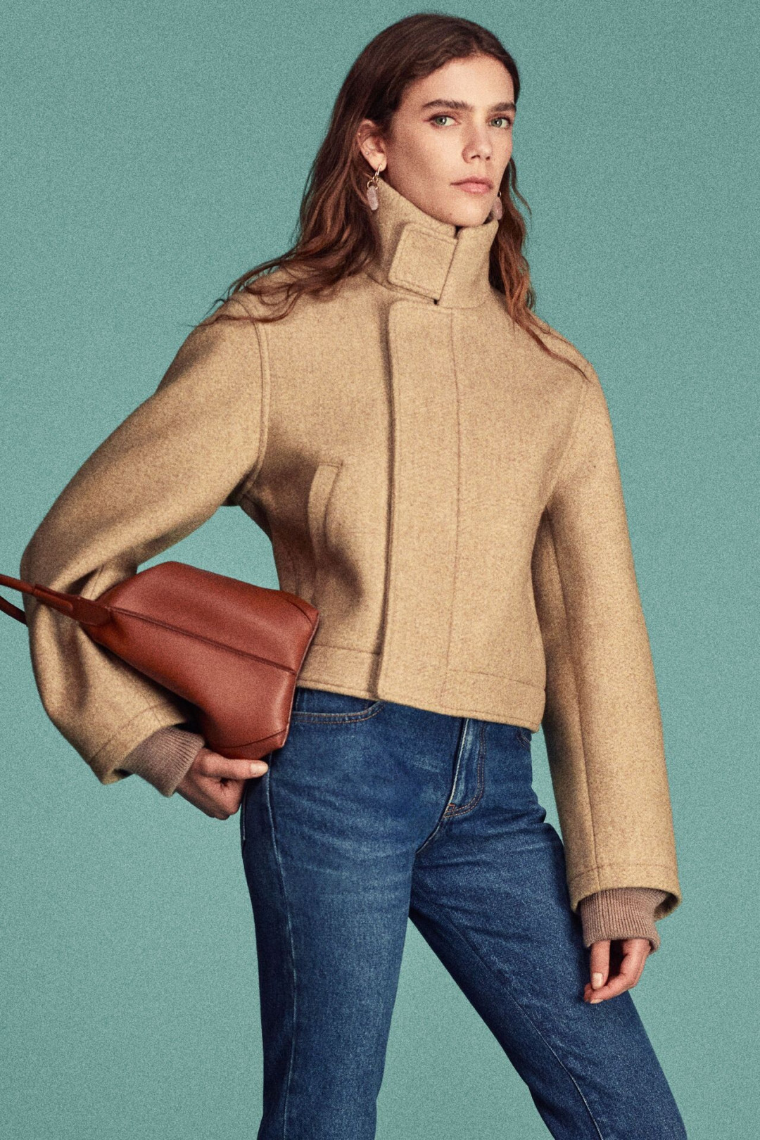 Говоря о верхней одежде, в гардеробе героини VB имеются темное пальто с капюшоном, мотоциклетная куртка с воротником-стойкой, удлиненный бушлат с атласными отворотами рукавов, а также знаковый пиджак марки — объемный и подчеркивающий талию. Теперь, в обновленной версии, у него появился вырез-отворот, который кардинально меняет линию плеч и делает силуэт более современным.
