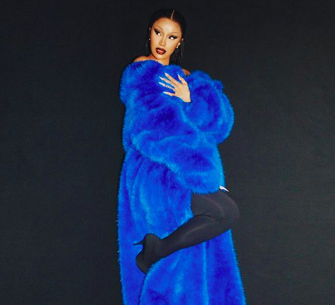 Больше всего наше внимание привлек образ, который демонстрировала Карди Би, в шубе цвета электрик размера XXL. Инге сделала рэперше ультратонкие накрашенные брови в стиле 1990-х годов.