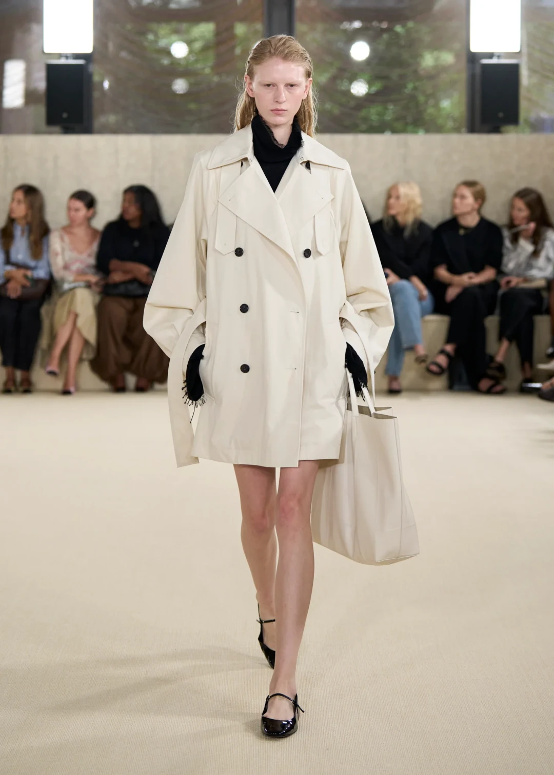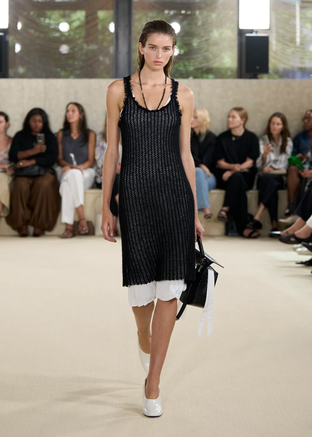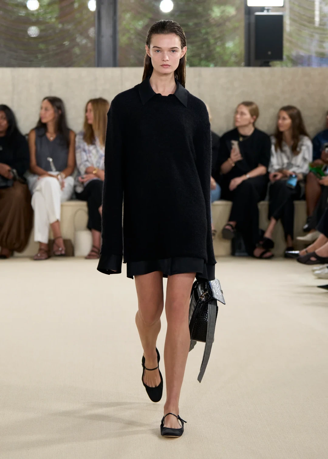 В этом сезоне Toteme с коллекцией SS ’26 пригласили нас в тишину. Ту самую, где слышен каждый шорох, где взгляд замедляется и останавливается на деталях. Элин Клин и Карл Линдман — скандинавский дуэт, основавший бренд в 2014 году — показали, что минимализм — это не отказ от цвета, а особый способ видеть. Черно-белая гамма коллекции звучала громче любых оттенков, заставляя всматриваться в пропорции, фактуру, в то, как свет медленно скользит по складкам ткани. И именно это внимание к нюансам становилось важнее самой вещи.