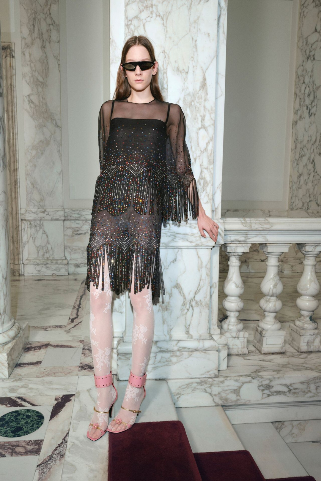 В сезоне Pre-Fall ‘26 дизайнер решил нажать на паузу и позволить минимализму стать частью замысла. «Негатив собственного максимализма», — так он охарактеризовал новую коллекцию, отмечая, что впервые получил удовольствие не от наслоений, а от вычитания. А отправной точкой для него послужили архивы Valentino конца 80-х и начала 90-х. Они раскрыли перед ним строгую, почти математичную дисциплину линий, которую он и переосмыслил по-своему.
