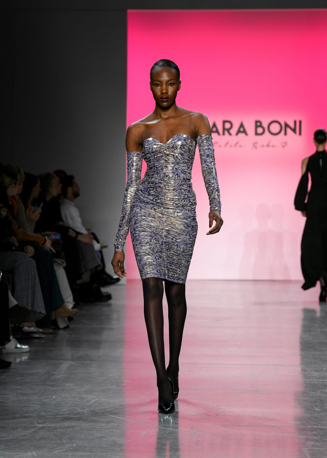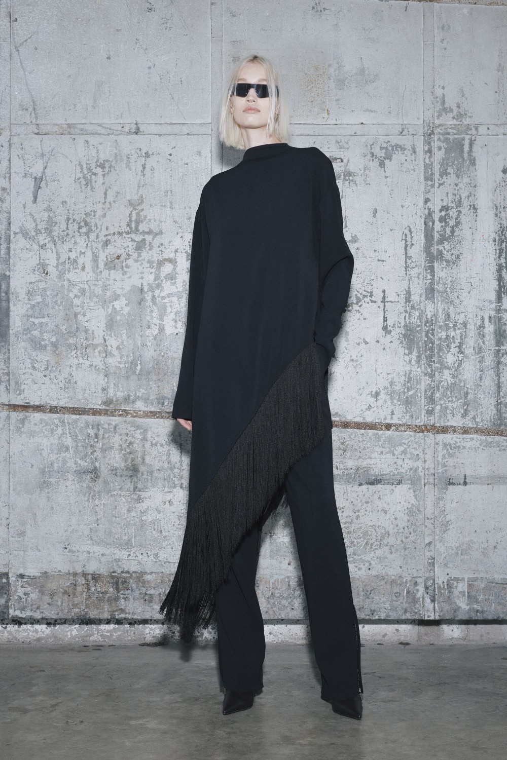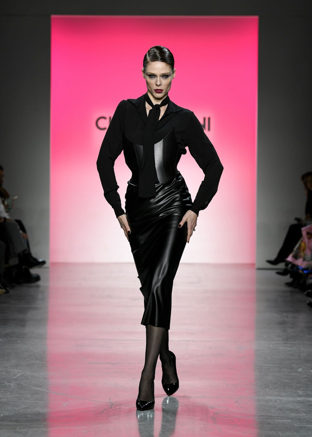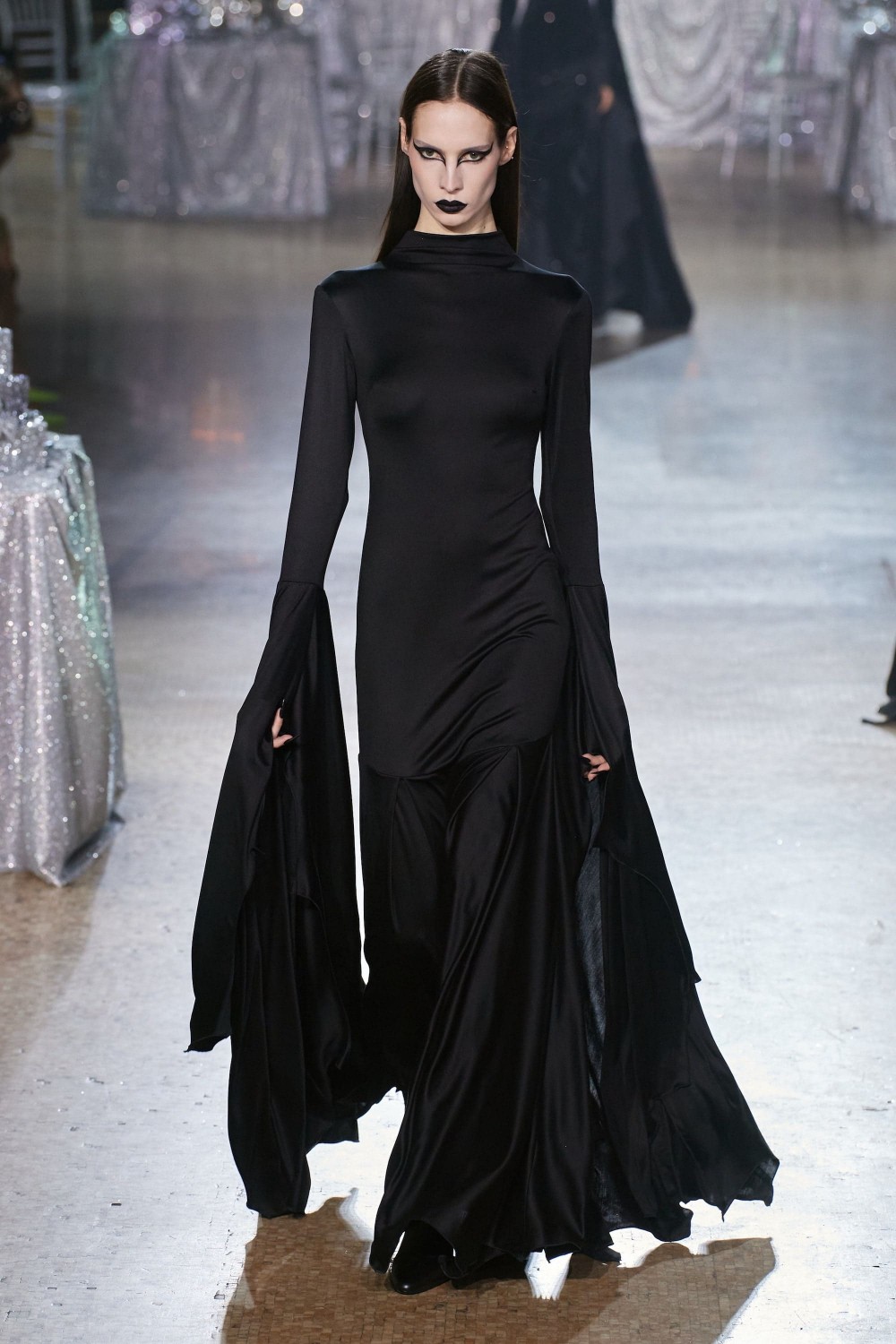 Вдохновленная резкими и соблазнительными образами Хельмута Ньютона, коллекция фокусируется на безупречных силуэтах и лаконичной цветовой палитре. В ее основу были заложены: черный и белый цвет, штрихи азалии и металлический блеск. Черные кожаные аксессуары и ремни с металлическими пряжками подчеркивали точность форм и делали акцент на соблазнительности. Женственные вырезы, широкие плечи и баски — платья изготовили из характерной для бренда эластичной плотной ткани. Они изысканно контрастировали с базовыми костюмами из бархата или в тонкую полоску. В свою очередь, люрекс и пайетки раскрыли гламурную душу коллекции и добавили блеска.