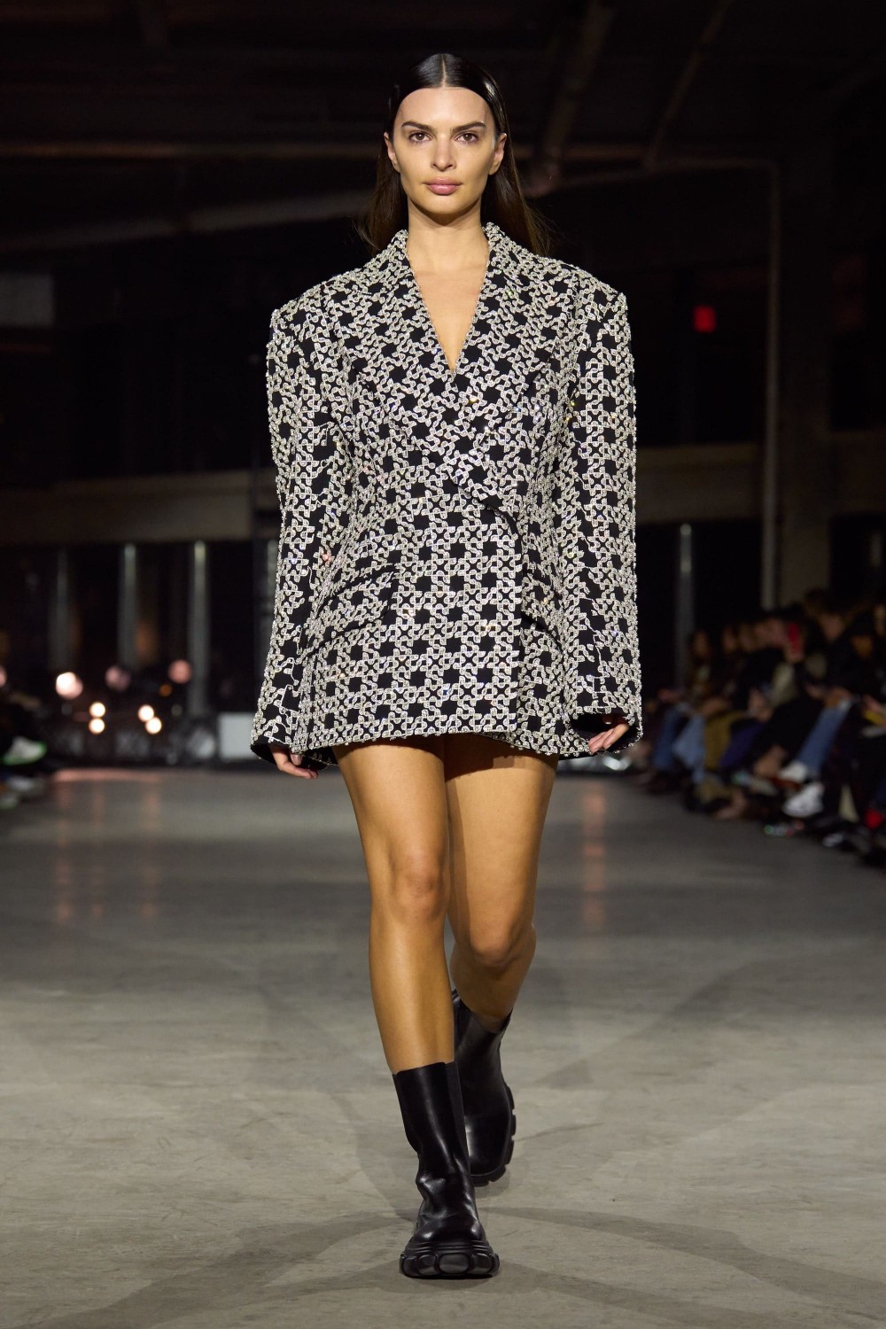 Бренд Simkhai представил невероятно стильные образы, изюминкой которых стала верхняя одежды из кожи. Некоторые изделия, сделанные из металлического кружева и бисера, отсылали к футуризму. Однако ведущее место, несомненно, было отведено кристаллам. Особый восторг у зрителей вызвал образ Эмили Ратаковски — модель облачилась в массивный короткий пиджак с удлиненными рукавами.