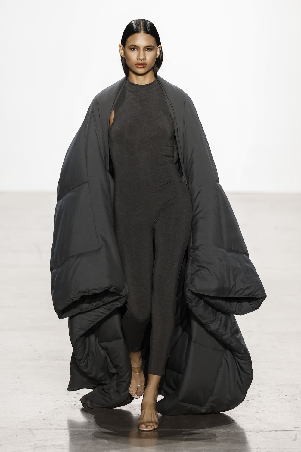 Новая коллекция Tiffany Brown – символ элегантности и классического вневременного образа. Бренд известен своими монохромными образами — серый цвет, по словам дизайнера – дипломатический тон, находящийся на грани между черным и белым. Он может быть невероятно загадочным. В коллекцию вошли эффектные платья, роскошное пальто из веганской кожи и с искусственным мехом, а также спортивные вещи с монограммой.