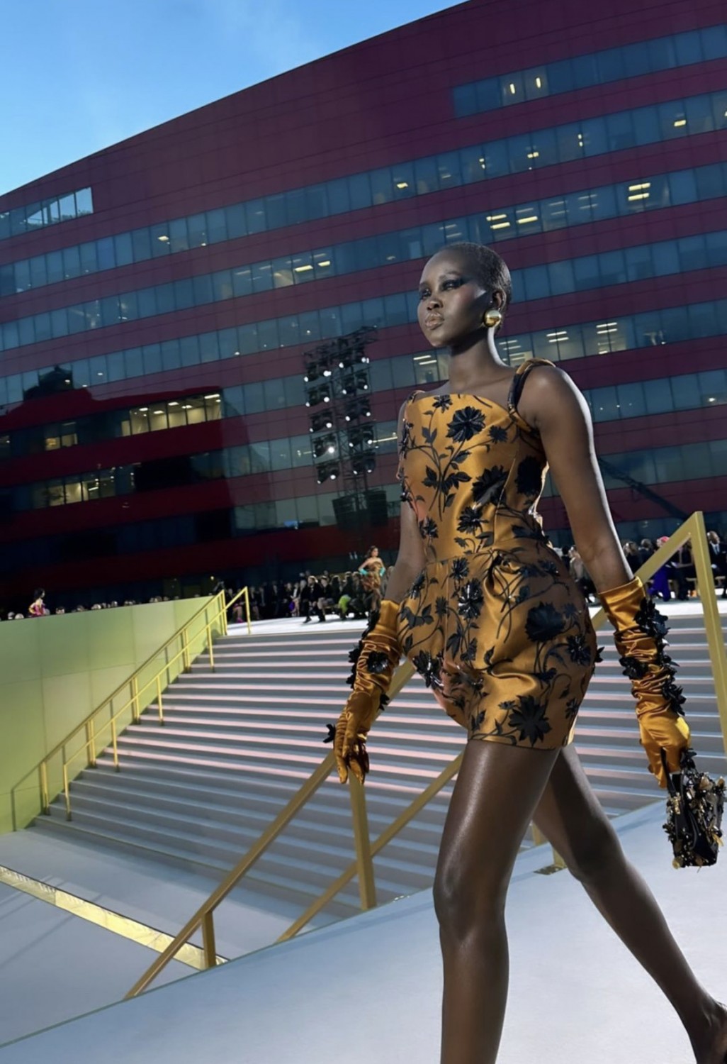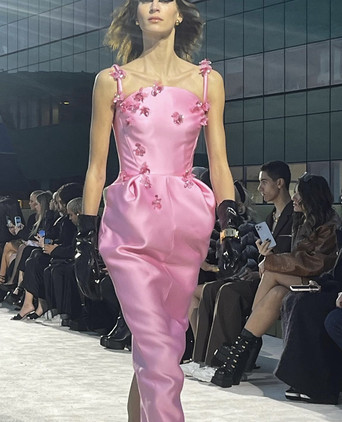 В последние годы фэшн-индустрия обратилась к streetwear-эстетике. Versace считает, что пора покончить с этой эпохой. В новом сезоне героиня бренда — сторонница гламура див прошлого. Он не должен «кричать», он скрыт от глаз и состоит не только из блесток и глиттера. Донателла стремилась придать образам силуэт, полный шарма, и представила архитектурный гардероб искусного покроя. В следующем сезоне Versace призывает нас отдать предпочтение юбкам с заниженной талией и глубокому декольте, дополняя образ перчатками до локтя, что напоминают о Золотом веке Голливуда.