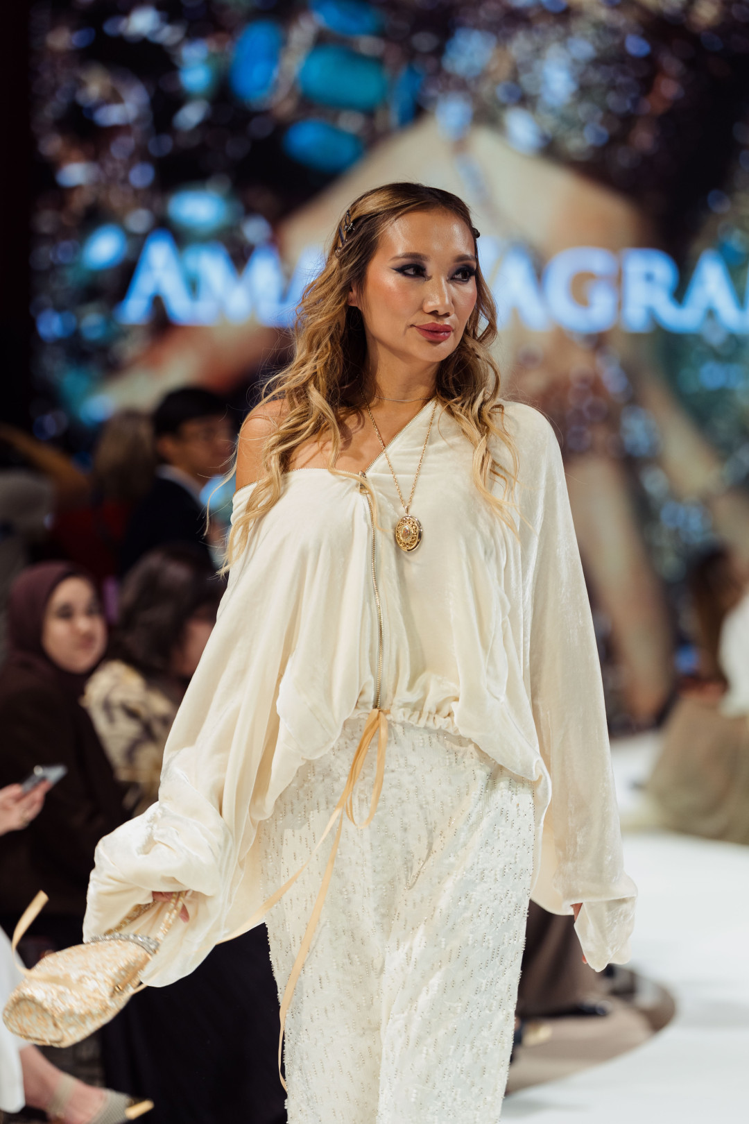 Amal Vagram пригласил зрителей в путешествие, где каждый образ становился отдельной остановкой. Nigora Hashimova предложила собственный взгляд на современную узбечку — уверенную, независимую и внимательную к биографии своих вещей. А Hajar показал, что традиция способна звучать современно тогда, когда ей дают пространство быть собой — через фактуру, ручную работу и ритм силуэта.