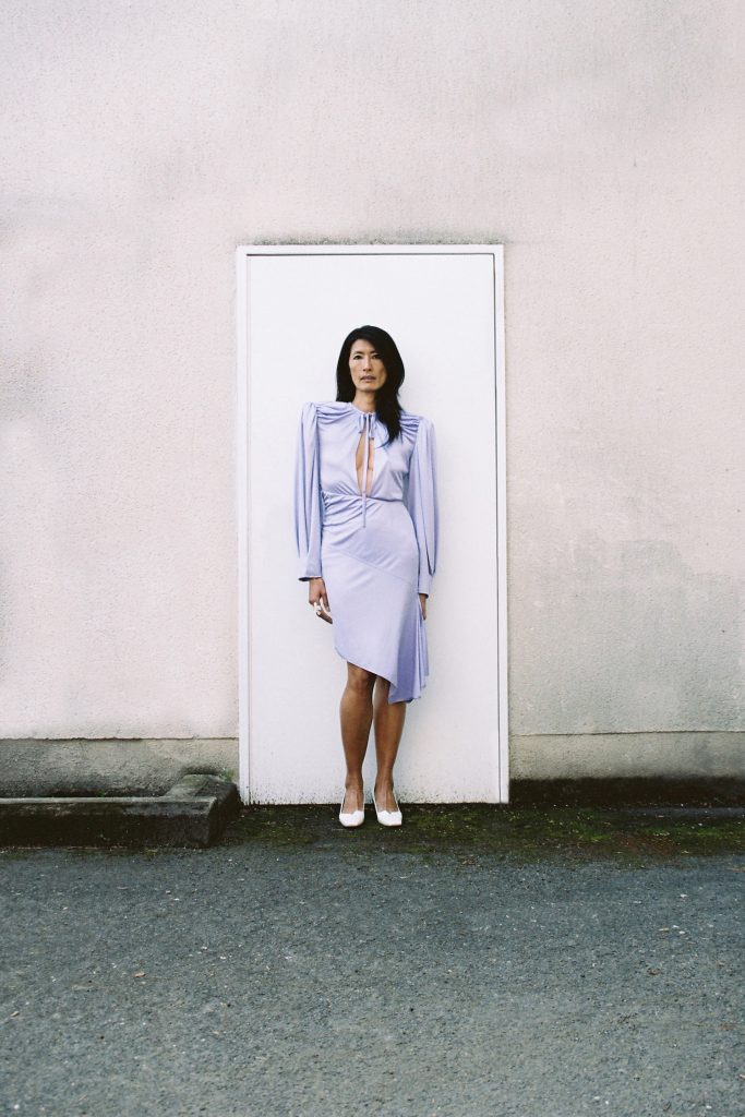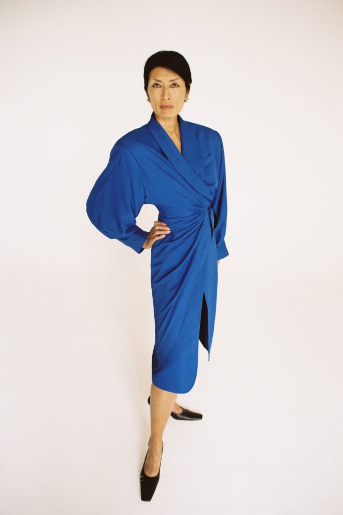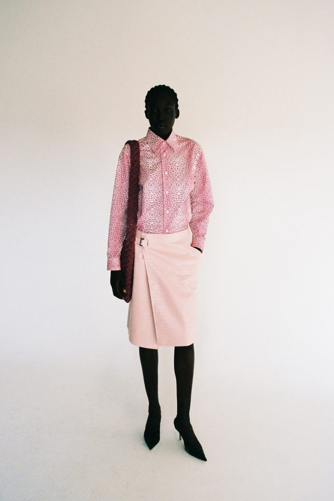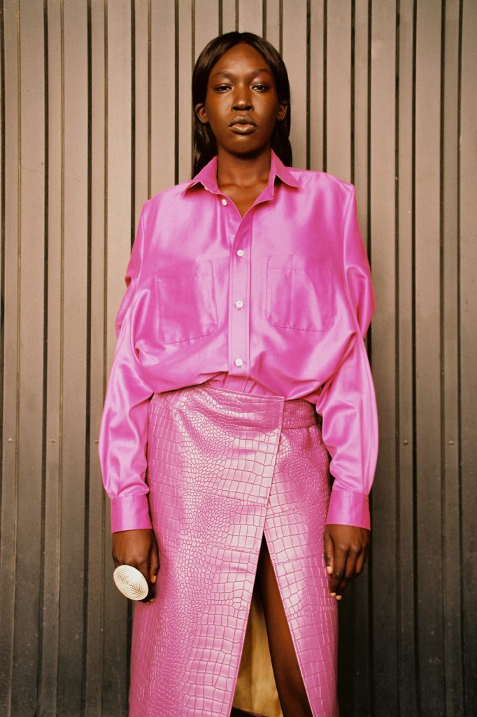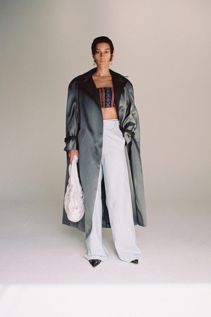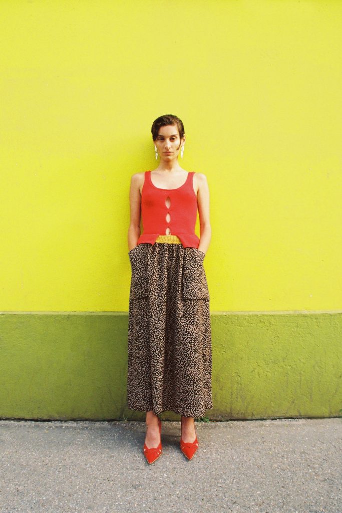 В образах прослеживается эстетика 90-х с современным сложным кроем: яркие цвета, объемные плечи и остроносые туфли. Выглядит свежо и актуально на сегодняшний день.