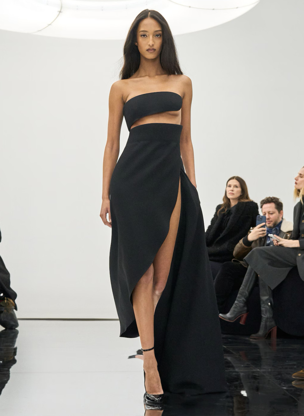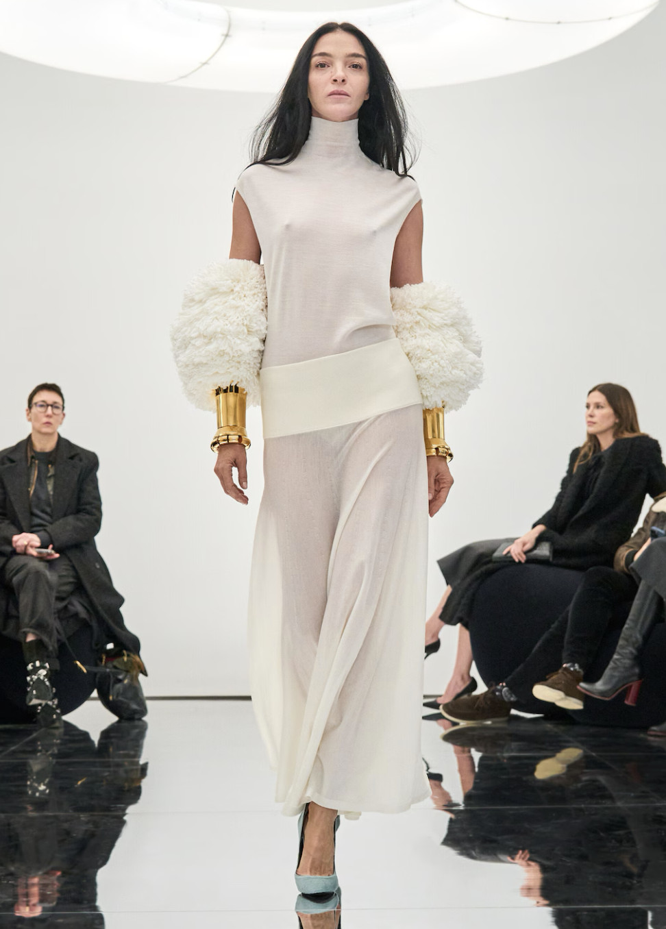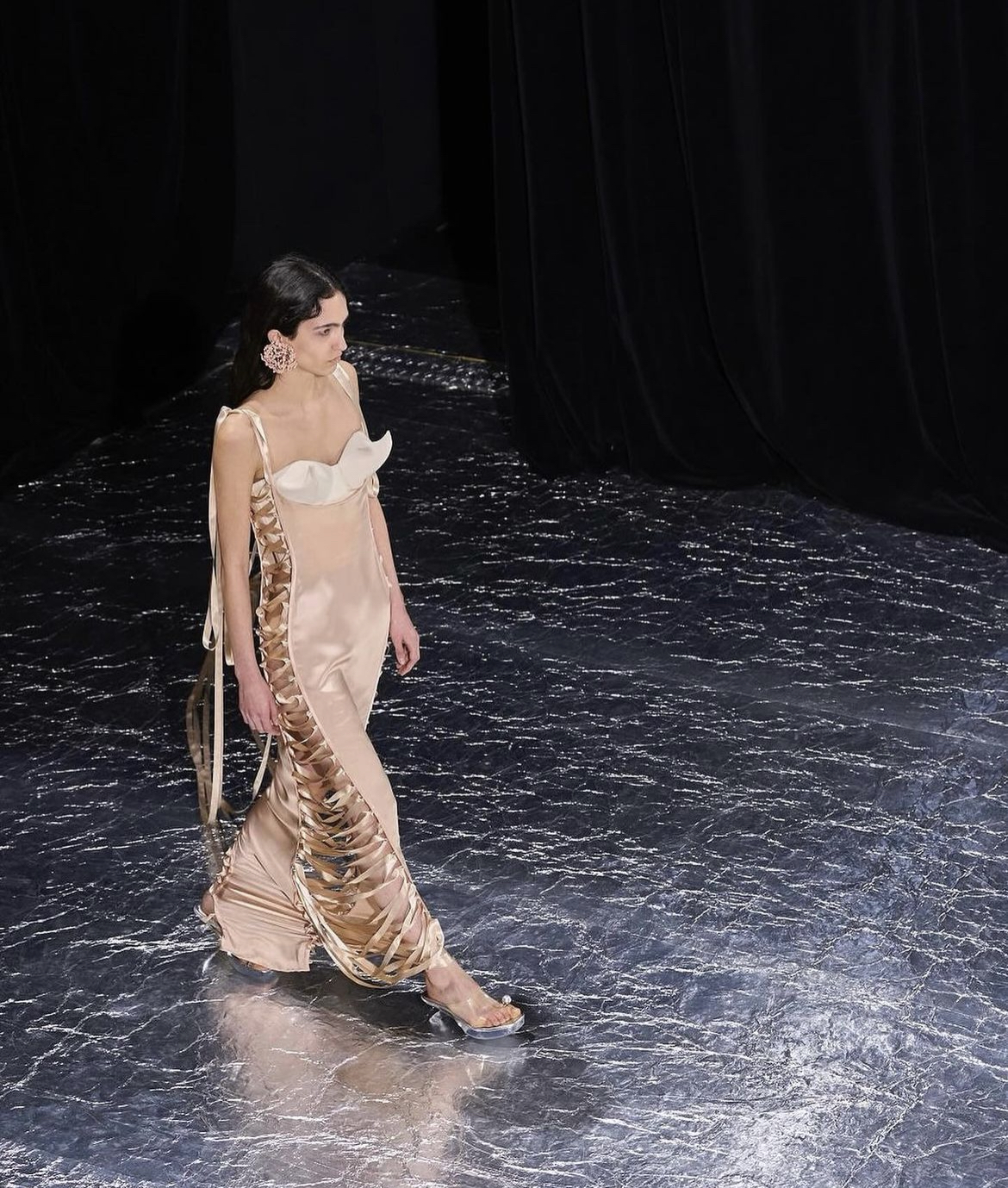 «Эта коллекция о простоте и чистоте. О том, что меньшее значит большее. Об интимности. О поиске свободы и изобретательности в этом», — так описал коллекцию SS '24 креативный директор Питер Мюлье в преддверии показа. Ее центральной темой стали аллюзии на женское тело. Каждый наряд таинственно и едва уловимо воспевал фигуру, подчеркивая ее изгибы, — все по канонам самого основательного Дома.
