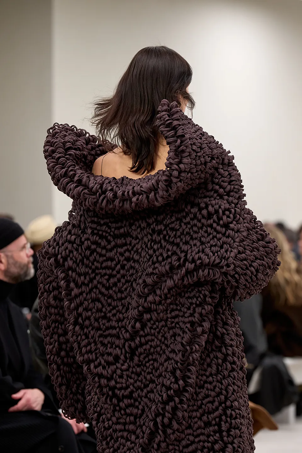 Особенно нашей редакции понравилось то, что Альтузарра, как истинный поклонник литературы, подарил гостям книгу, которая вдохновила его на коллекцию. В этот раз отправной точкой стал «Грозовой перевал» Эмили Бронте — роман о страсти, трагедии и неразрывной связи с родной землей. Отсюда и свитера с бахромой, словно сотканные из грез, кружевные манжеты и строгие воротнички, которые переносят нас в мир его героев.
