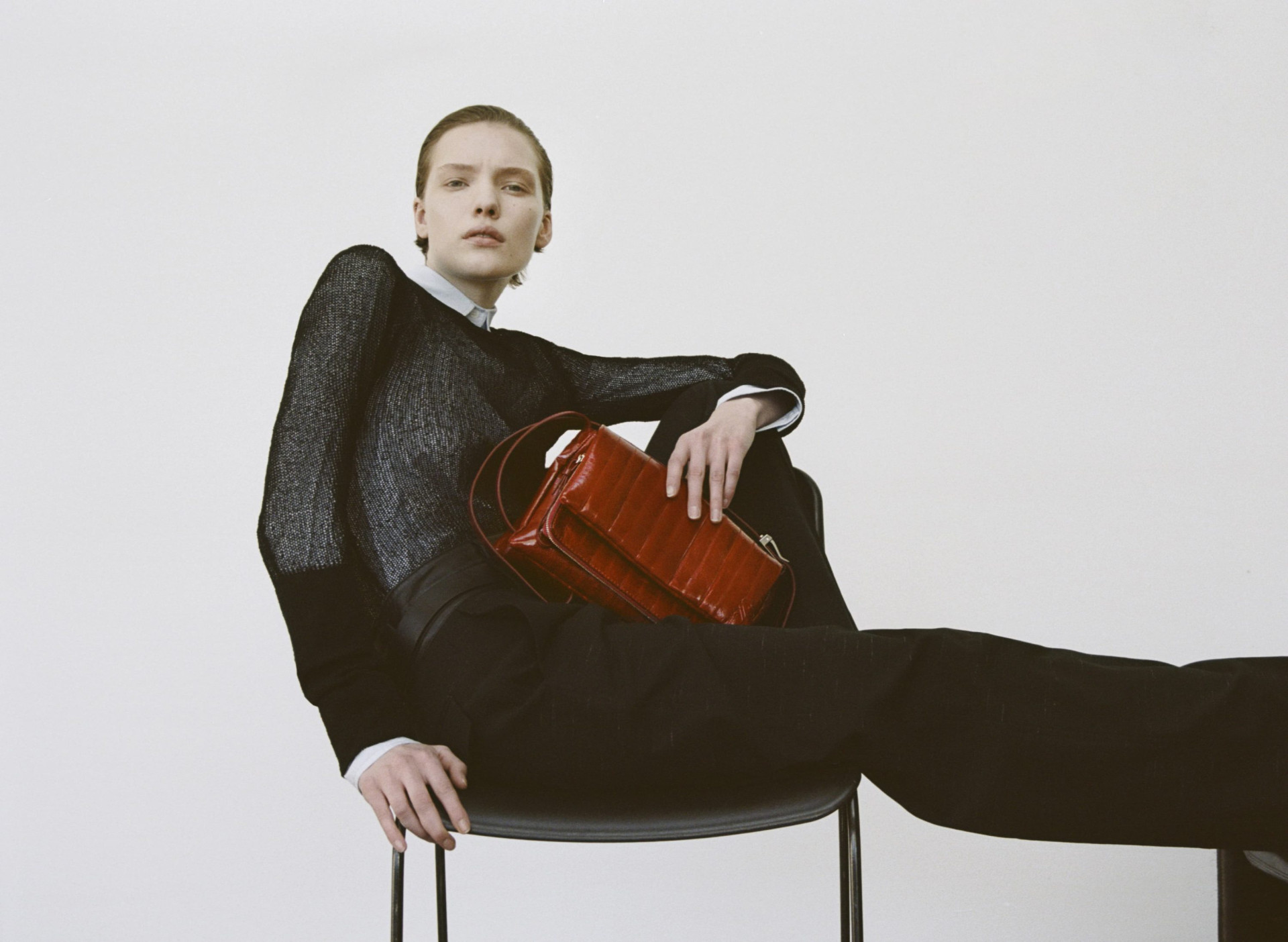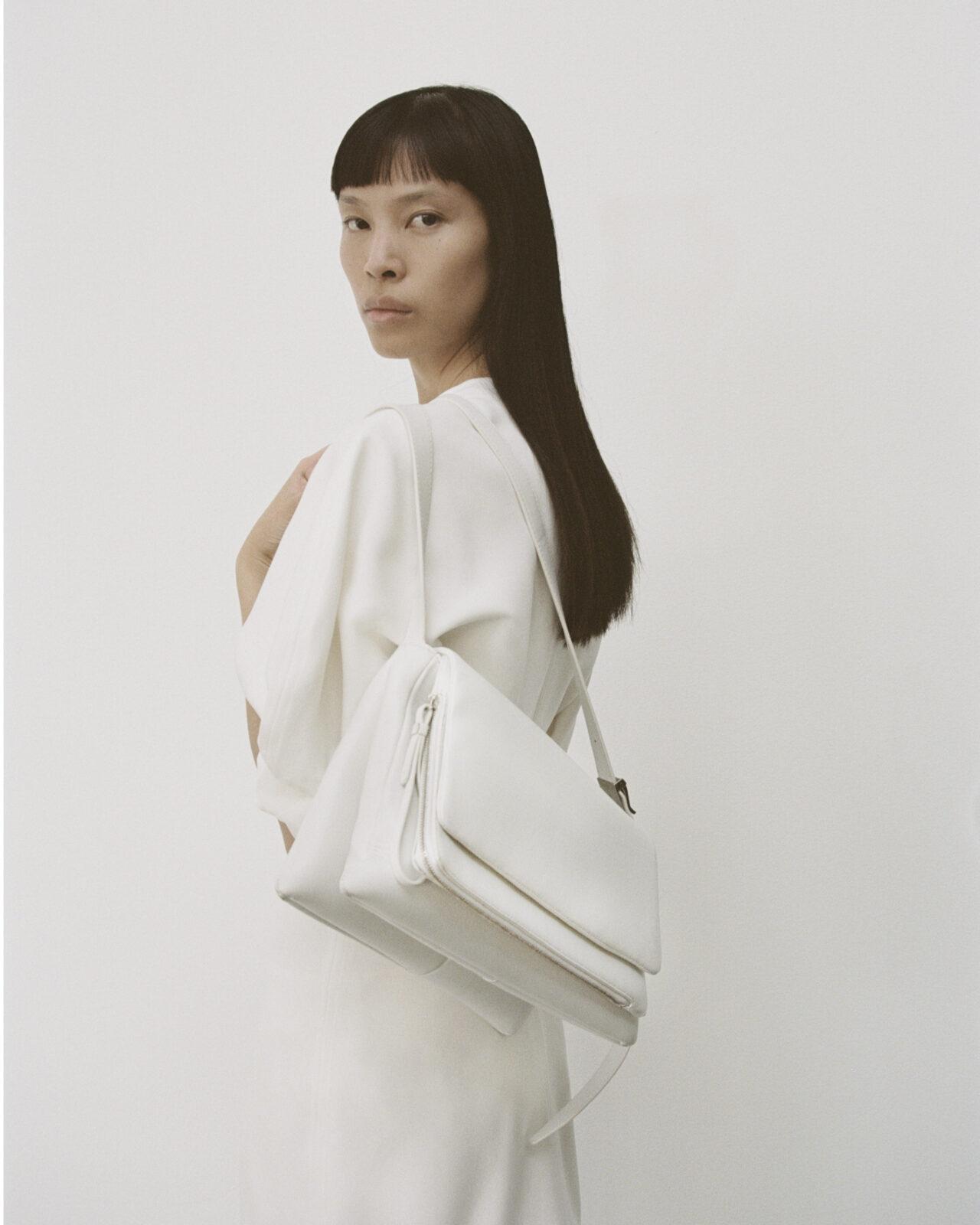 Завершают коллекцию аксессуары, среди которых сумки Slide и Bonb, которые имеют скульптурные силуэты и выполнены из замши и гладкой кожи.