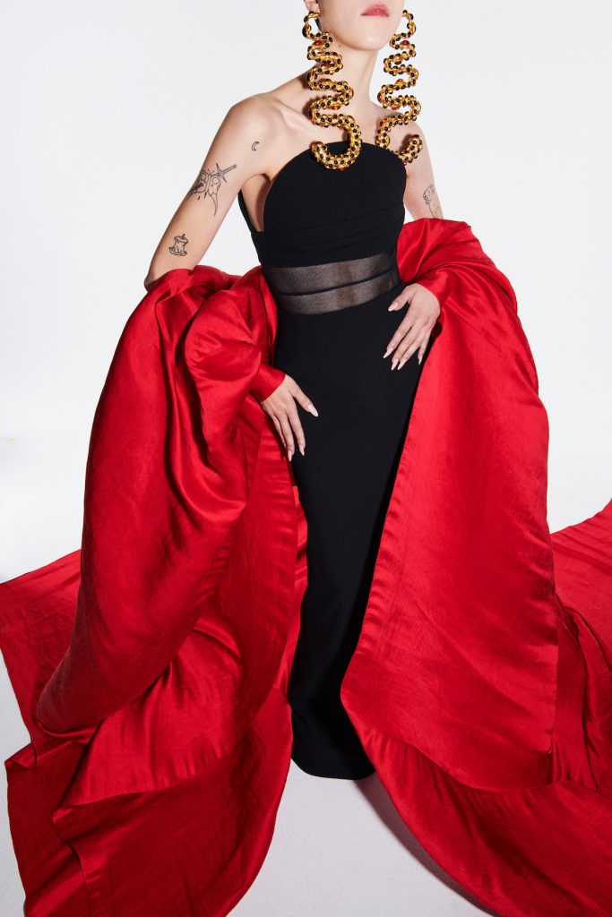 «Мне всегда нравилось, как Эльза вышивала изделия. В то время, когда вышивка была еще очень сдержанной, почти тающей, у нее она была напористой. Я попытался передать тот же дух в этой коллекции. Вышивка там обработана почти сыро: воспринимается как украшение, почти как драгоценный камень – ощутима рука мастера, который ее сделал. Это естественное продолжение самих силуэтов, которые несут в себе такую же смелость. Слово «магия» часто ассоциируется с миром шитья. И правда – это волшебство. Но за магией стоит рука и знания. Эта коллекция – двойная дань уважения к магии»,