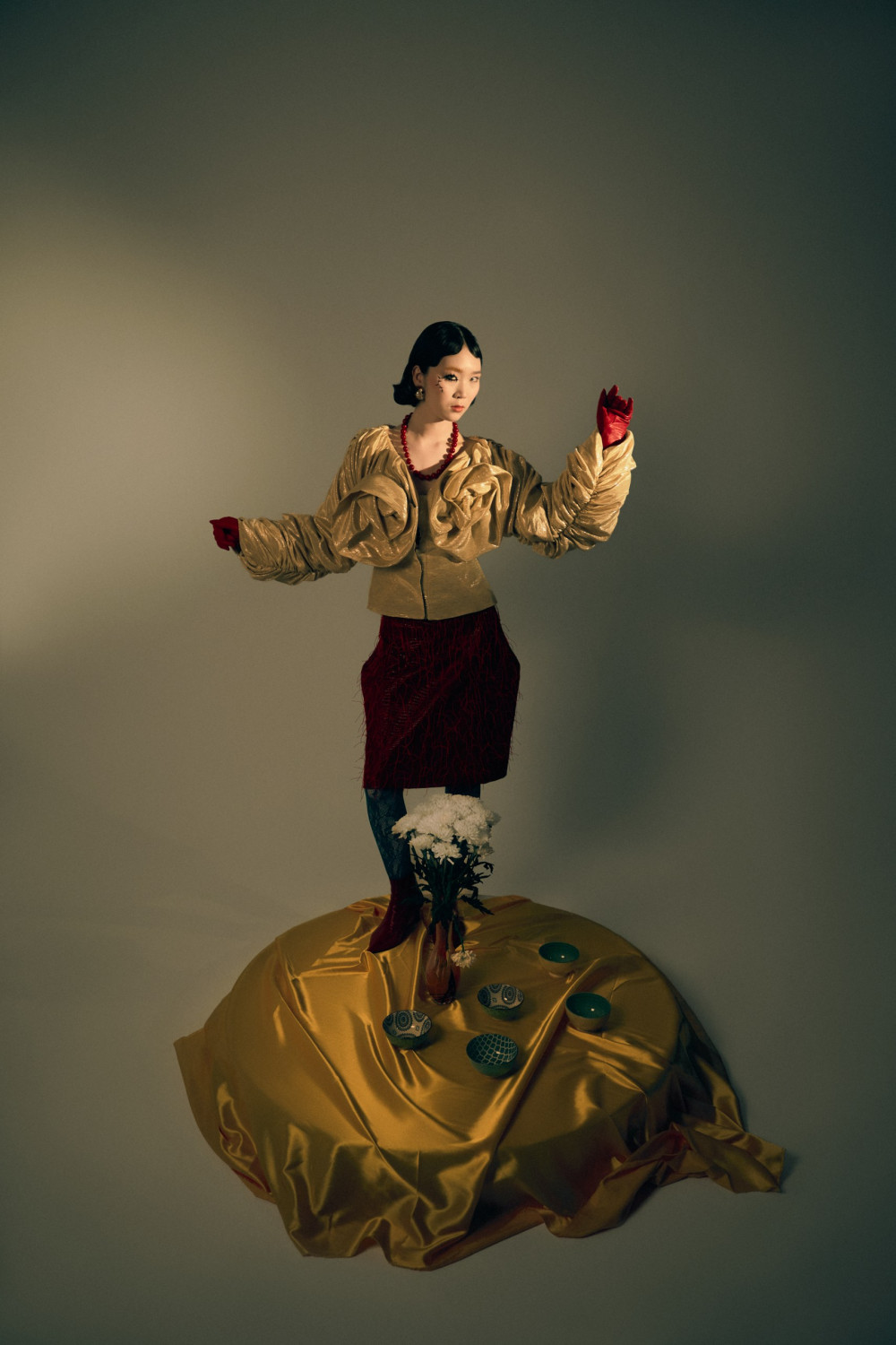 Вдохновением для съемки послужили культовые показы, оставшиеся в модной памяти как настоящие спектакли. Одним из первых визуальных импульсов стало шоу Александра Маккуина сезона FW '04 — не коллекция, а настоящая трагедия, разворачивающаяся на подиуме в трех актах. В этом же ряду — Джон Гальяно, Рэй Кавакубо, Мартин Маржела. Те, кто из показа делал высказывание, где каждая складка, каждый шаг модели были частью тщательно выстроенной режиссуры.