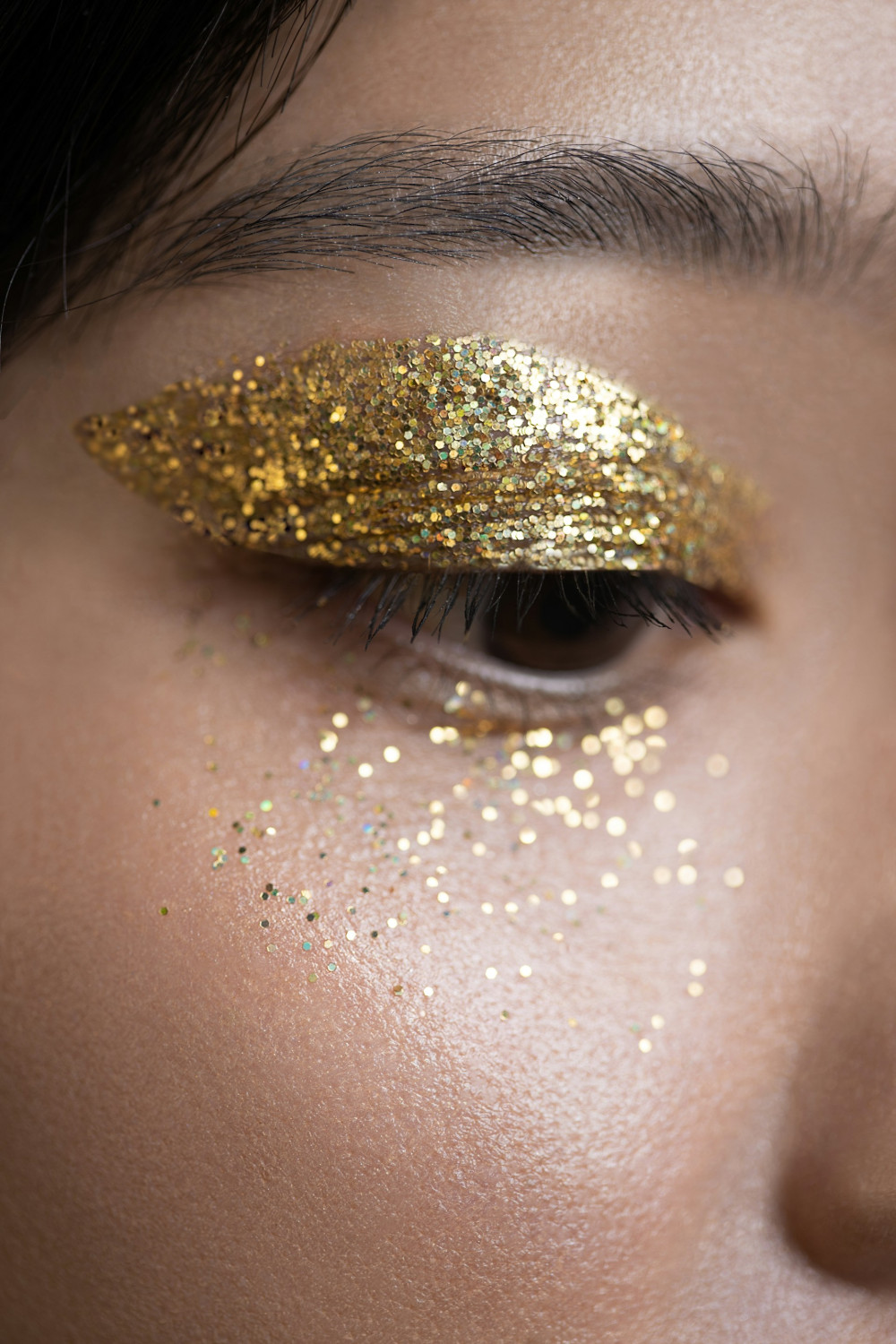 - В макияже — блестки, серебристые или голубые тени, блеск для губ с влажным эффектом. Ногти — короткие или средней длины, с дизайном в стиле «френч» или неоновыми оттенками.