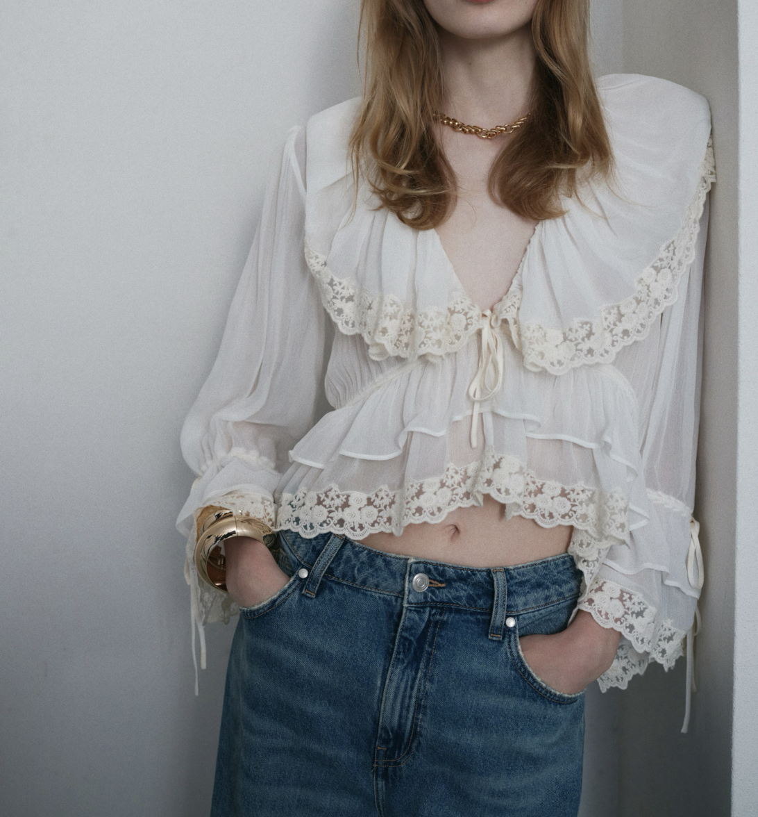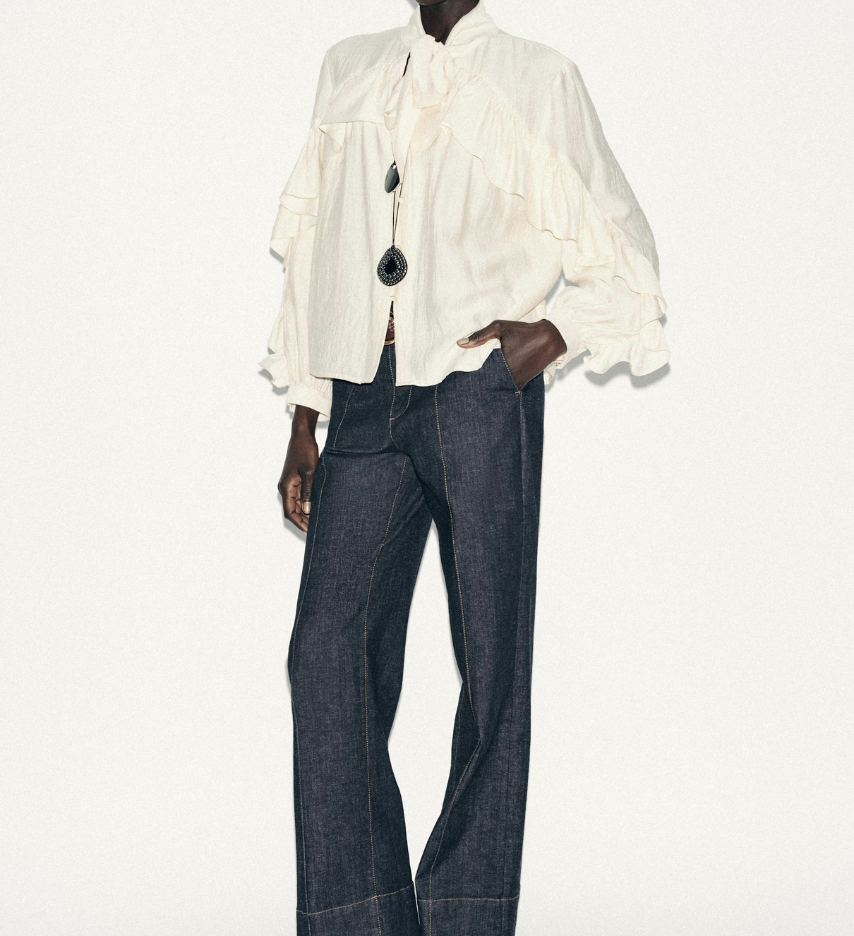 Вдохновение прошлым — излюбленный прием дизайнеров, но в этом сезоне они углубились не просто в архивы, а в страницы истории. Эпоха Елизаветы, уже получившая звучное название «эстетика Шекспира», уверенно заняла подиумы и гардеробы. Объемные рукава, крестьянские блузы, величественные жабо-воротники стали символами новой романтики.