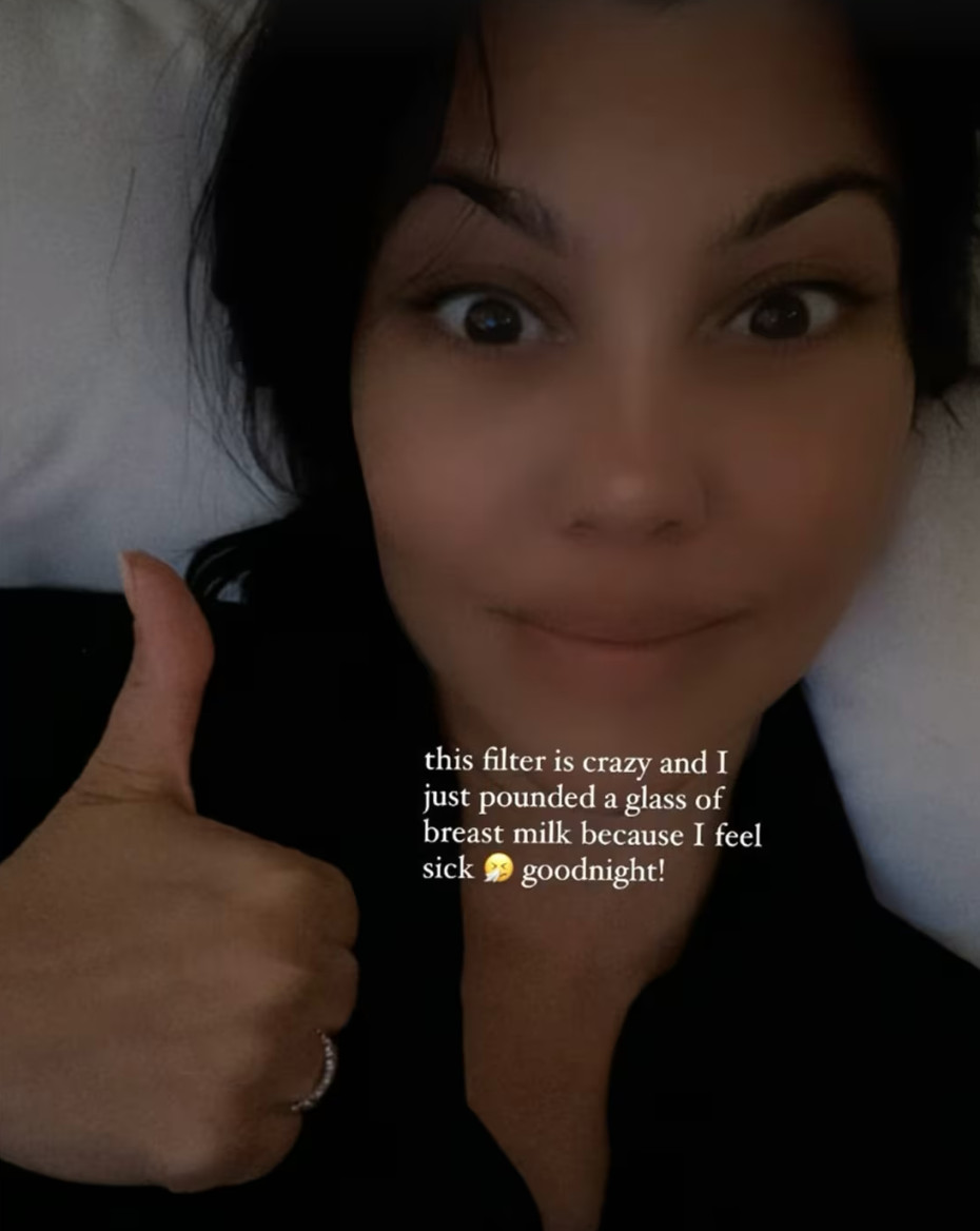 Звезда раскрыла свой нетрадиционный метод улучшения самочувствия в Instagram. Она опубликовала фотографию, на которой запечатлена в постели. «Только что выпила стакан грудного молока, потому что меня тошнит… спокойной ночи!», — подписала публикацию Кортни.